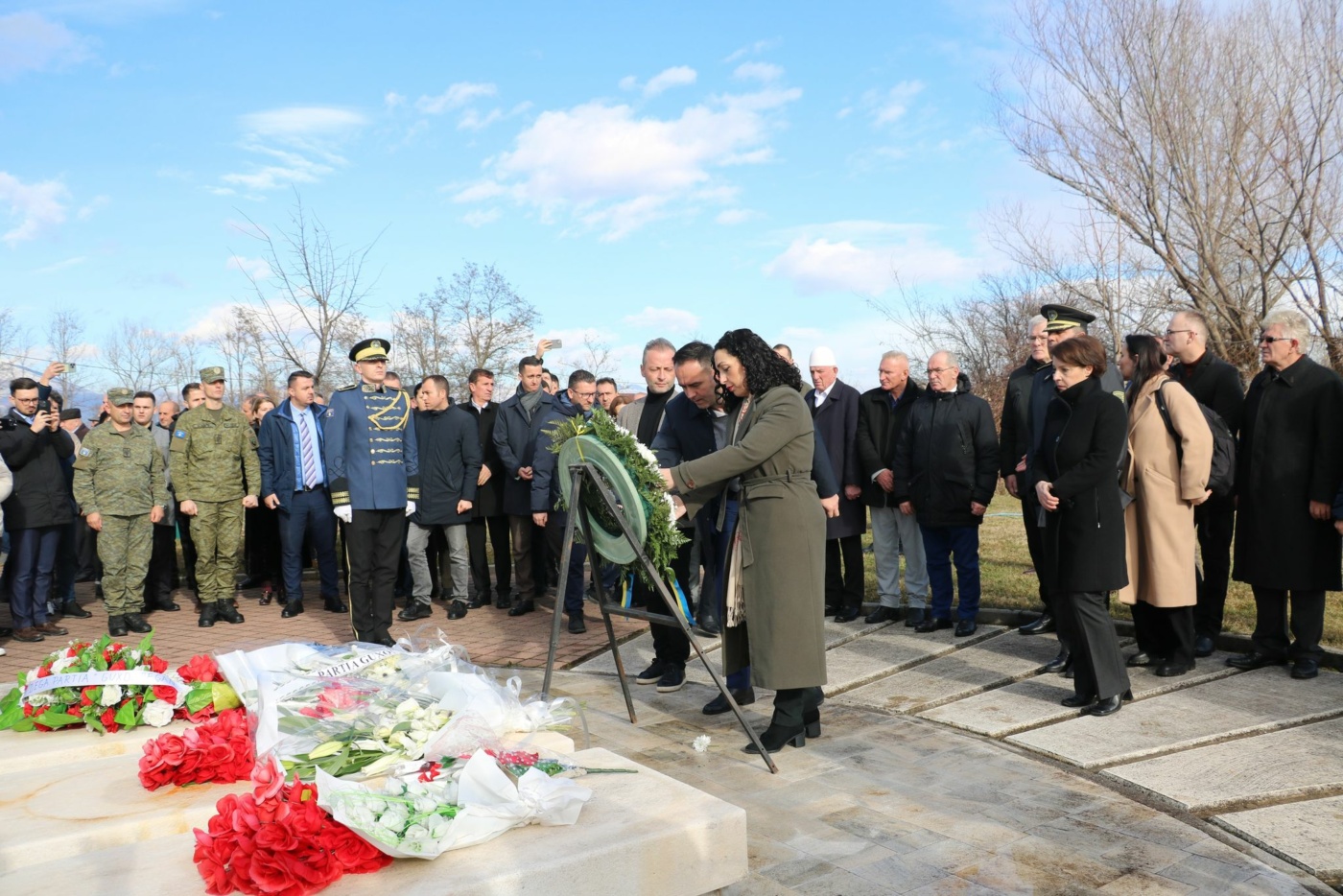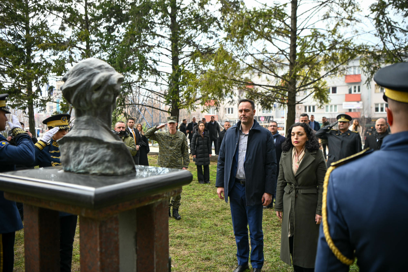 Po ashtu, Kryetari Konjufca së bashku me Presidenten Osmani, bëri homazhe dhe vendosi kurora lulesh te busti i heroit Kadri Zeka, në Prishtinë.