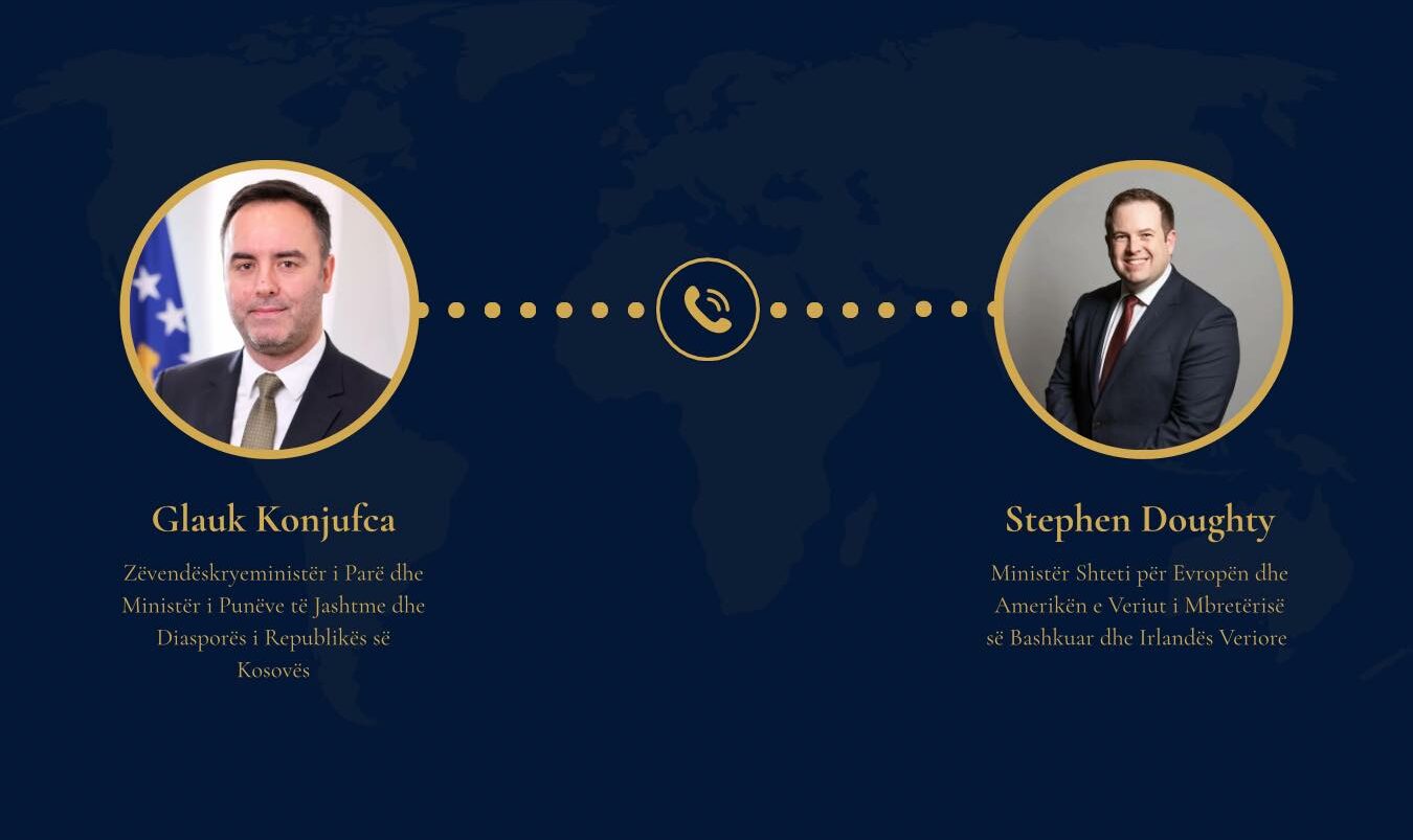 Zëvendëskryeministri i Parë dhe ministri i Punëve të Jashtme dhe Diasporës, Glauk Konjufca, ka zhvilluar një bisedë telefonike me ministrin e Shtetit për Evropë dhe Amerikën e Veriut të Mbretërisë së Bashkuar dhe Irlandës Veriore, Stephen Doughty.