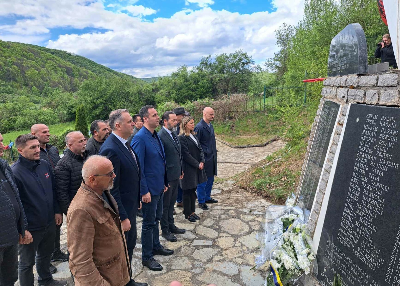 Në Ribar, ku para 25 vjetëve forcat pushtuese serbe vranë 25 civilë shqiptarë, kryetari Konjufca, pas homazheve, takoi familjarë të të rënëve.