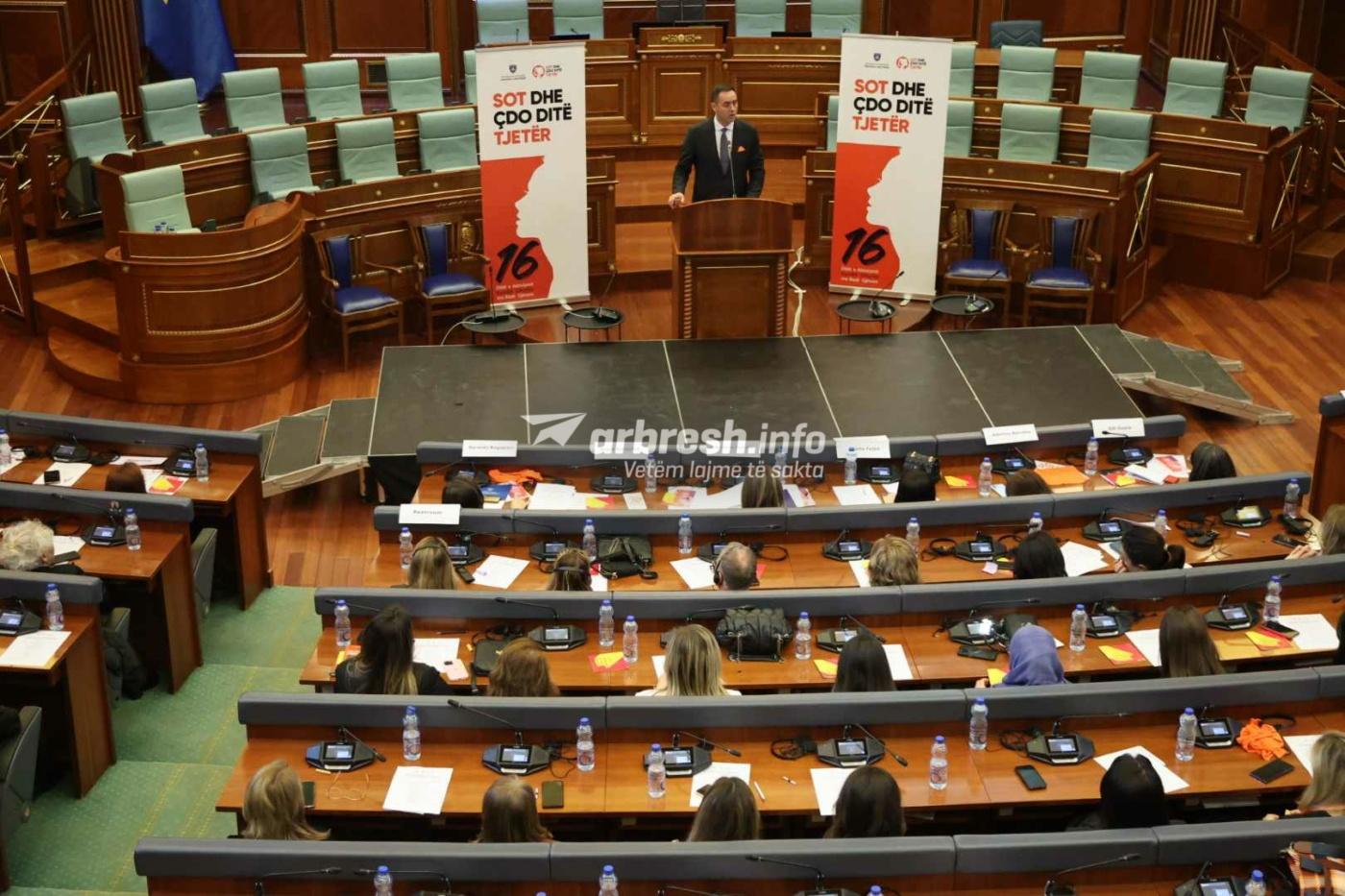 Në sallën plenare të Kuvendit sot dominonte ngjyra portokalli. Aty nuk pati seancë plenare, por u mblodhën drejtues institucional legjislativ, ekzekutiv, nga organizatat e shoqërisë civile e aktiviste në kuadër të fushatës globale “16 Ditët e Aktivizmit Kundër Dhunës me Bazë Gjinore”, kauzë që bashkoi të gjithë rreth një fronti të përbashkët për t’i thonë boll dhunës.