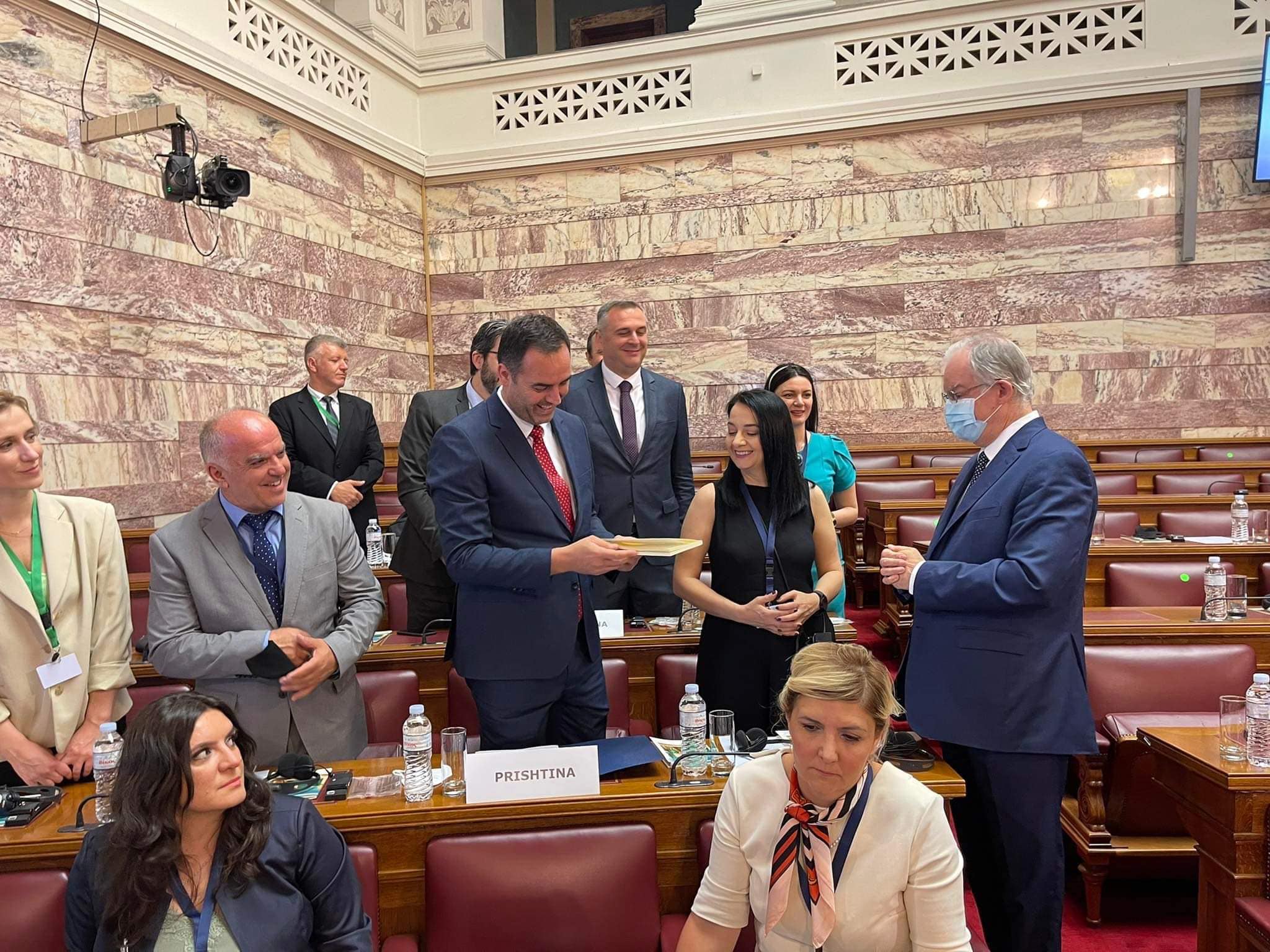 Kryetari i Kuvendit të Greqisë, Constantine Tassoulas, i ka dhuruar një libër Glauk Konjufcës, duke veçuar Kosovën dhe delegacionin e saj.