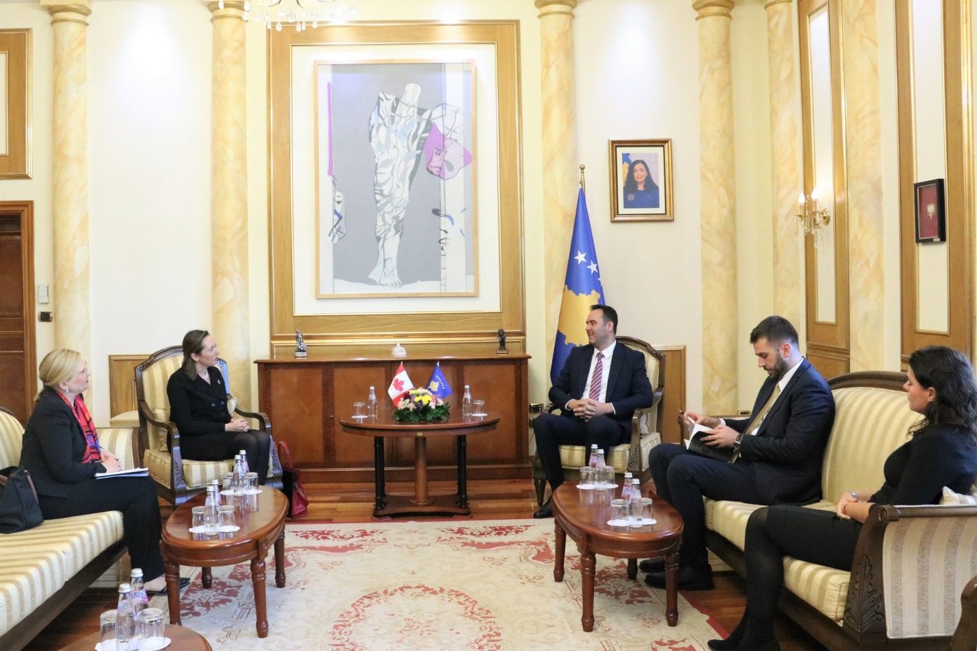 Kryetari i Kuvendit të Republikës së Kosovës, Glauk Konjufca, i shoqëruar nga shefi i Kabinetit, Ilir Kërçeli dhe këshilltarët, ka pritur sot në takim ambasadoren e re jorezidente të Kanadasë në Kosovë, Jessica Blitt.