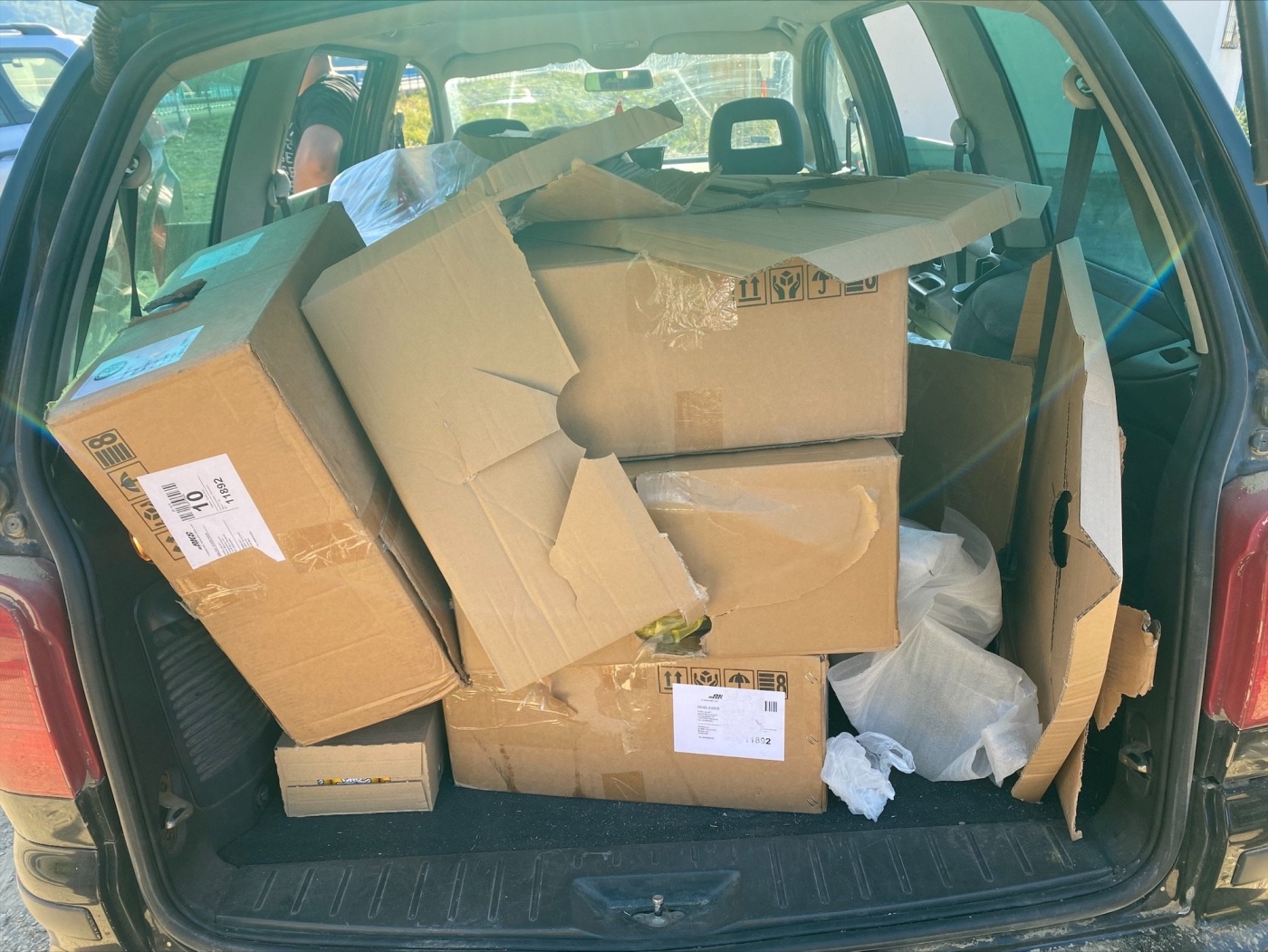 Pas kontrollit në automjet është hasur në një sasi të mallrave të ndryshme si: fellne të reja 4 copë, salveta palloma-disa pako, zbutës të rrobave, pako me gjëra të ndryshme ushqimore si:çokolata, qumësht, pije të gazuara, jogurt, pelena etj, thuhet në një postim në Facebook nga Policia e Kosovës.