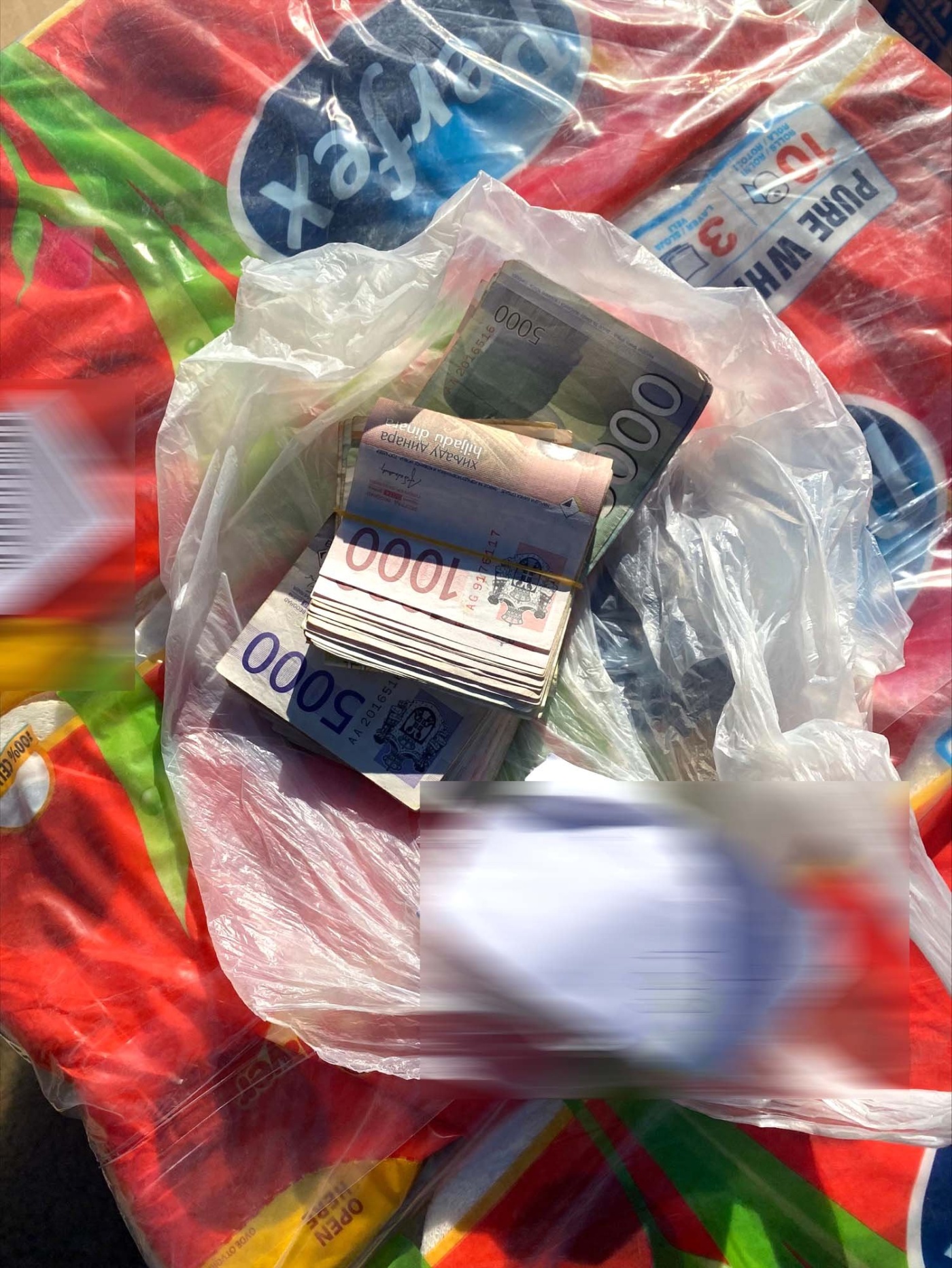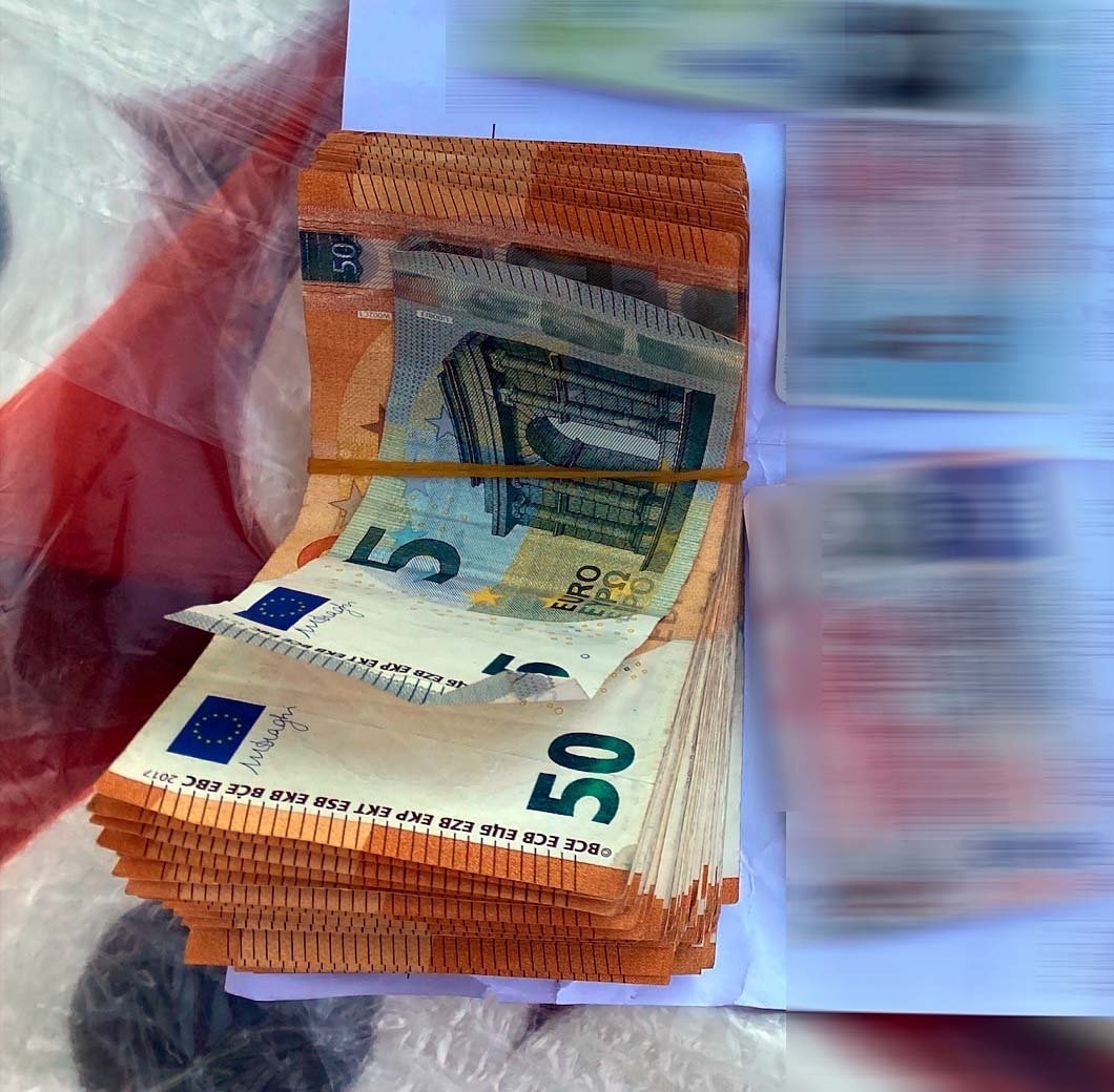 Sipas Policisë, gjatë kontrollit në automjet dhe në çantë të krahut të vozitësit, kanë hasur në posedim të parave të gatshme 5010 euro si dhe 128.250 dinar.