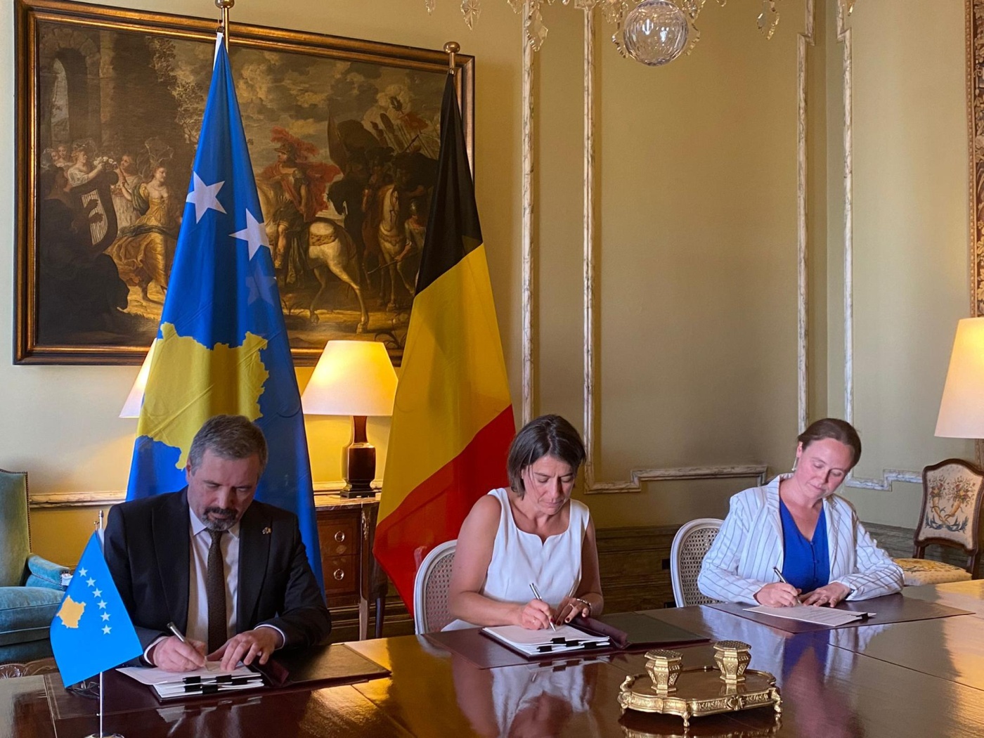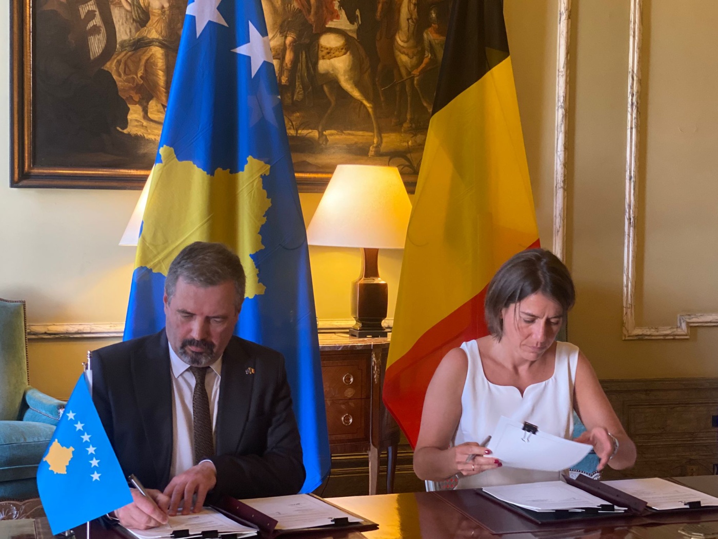 Marrëveshjen mbi Profesionin Fitimprurës të Vartësve të Caktuar të Misioneve Diplomatike dhe Posteve Konsullore, në emër të Republikës së Kosovës e ka nënshkruar Ambasadori i Republikës së Kosovës në Mbretërinë e Belgjikës, Agron Bajrami, dhe në emër të Mbretërisë së Belgjikës Sekretarja e Përgjithshme e Ministrisë së Punëve të Jashtme të Belgjikës, Theodora Gentzis, si dhe Udhëheqësja e Divizionit Juridik në Qeverinë e Rajonit Flaman, Delphine Delouvroy.