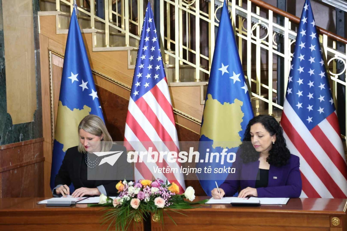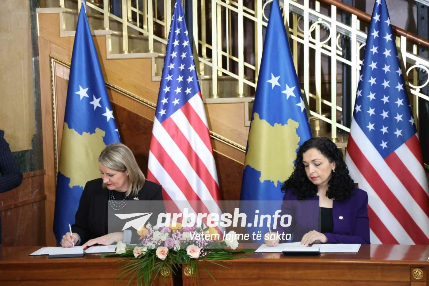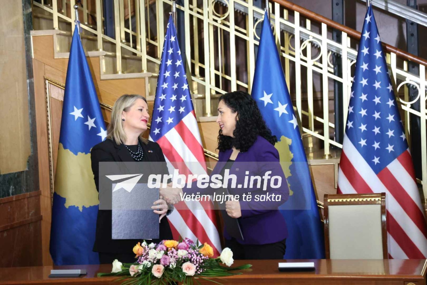 Presidentja e vendit, Vjosa Osmani dhe nënsekretarja e SHBA-së për Diplomacinë Publike, Elizabeth Allen kanë nënshkruar një marrëveshje mirëkuptimi kundër manipulimit të informacionit nga shtetet e huaja.