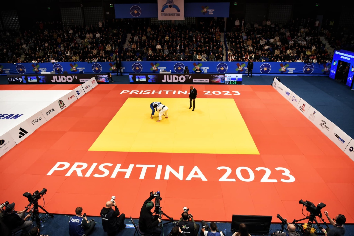 Pallati i Rinisë dhe Sporteve në Prishtinë ishte përplot me sportdashës që kishin ardhur të shohin xhudistët e tyre të preferuar të cilët kësaj radhe po garonin në shtëpinë e tyre.