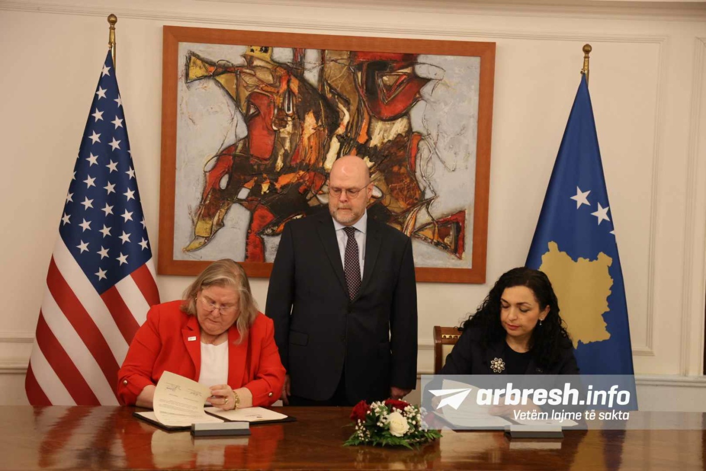Presidentja e Republikës së Kosovës, Vjosa Osmani dhe Mary Elieen Devitt, në emër të USAID-it kanë nënshkruar marrëveshjen e grantit për objektivat zhvillimore, në vlerë prej 34.5 milionë dollarësh.
