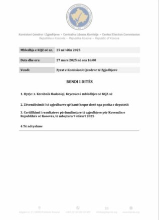 Sipas njoftimit për media, mbledhja pritet të filloj nga ora 16:00 dhe mbahet në zyret e KQZ-së./Arbresh.info