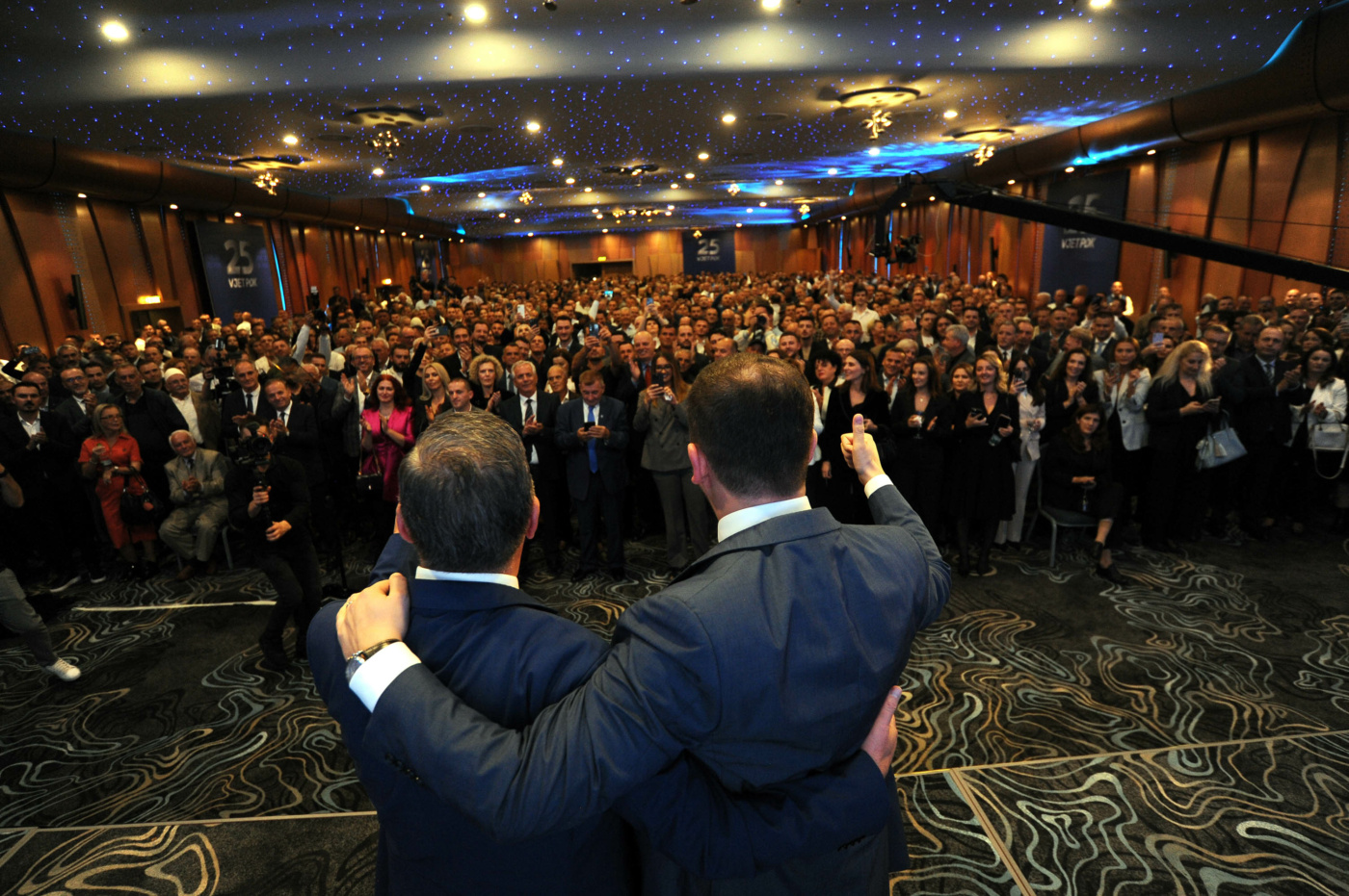 “Kur popullit tonë i cenohej identiteti, gjuha, shpresa dhe vetë ekzistenca, të rinjtë trima si Hashim Thaçi, Kadri Veseli e shumë bashkëveprimtarë dhe bashkëveprimtare të tyre, shumë prej të cilëve i kemi edhe sonte prezent këtu, u ngritën në këmbë dhe formuan Ushtrinë Çlirimtare të Kosovës, organizimin më të suksesshëm politiko-ushtarak në historinë tonë, si ADN-ja e partisë tonë. Prandaj, derisa festojmë 25 vjetorin e Partisë Demokratike të Kosovës, ju lus të gjithëve që jeni sot që t’ia rikujtoni gjithmonë vetes një gjë: Partia Demokratike e Kosovës është një histori e jashtëzakonshme e dashurisë, sakrificës dhe kontributit për Kosovën!”, theksoi ai.
