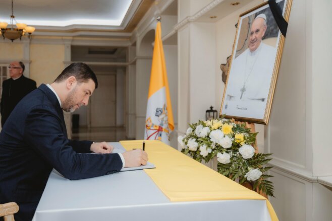 Kryetari i Partisë Demokratike të Kosovës, Memli Krasniqi, nënshkroi librin e ngushëllimeve në Katedralen “Shën Nënë Tereza” në Prishtinë, me rastin e ndarjes nga jeta të Papa Françesku.