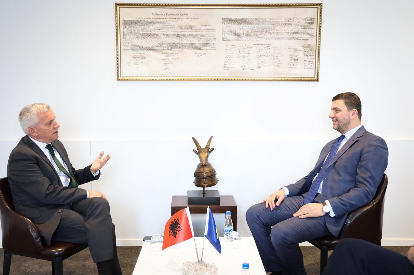Kryetari i PDK-së, Memli Krasniqi, ka pritur sot në takim ambasadorin e Shqipërisë në Kosovë, Qemal Minxhozi.