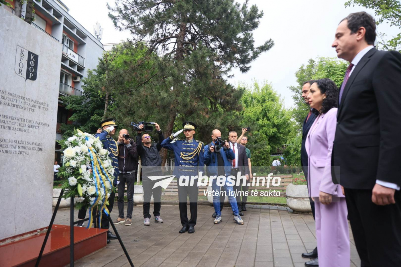 Presidentja e Kosovës, Vjosa Osmani, kryeministri Albin Kurti dhe kryetari i Kuvendit, Glauk Konjufca, kanë bërë homazhe sot para pllakës përkujtimore të ushtarëve të rënë të NATO-s.