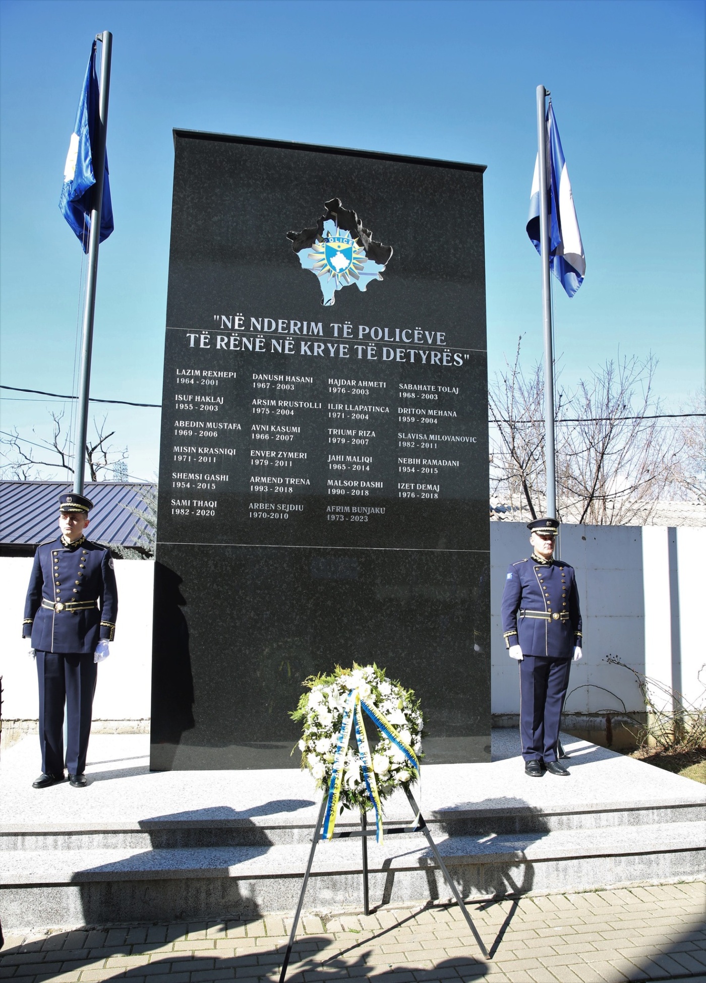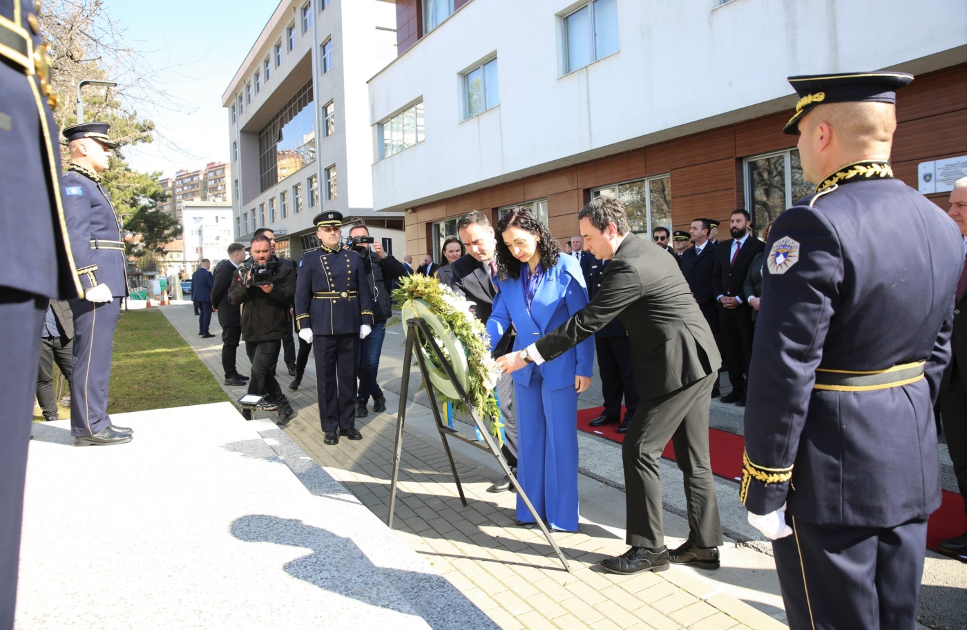 Me rastin e shënimit të 16- vjetorit të pavarësisë së Republikës së Kosovës, Presidentja e shtetit, Kryeparlamentari dhe Kryeministri i Republikës së Kosovës, së bashku me menaxhmentin e lartë të Policisë së Kosovës, bënë homazhe pranë monumentit të policëve të rënë në detyrë.