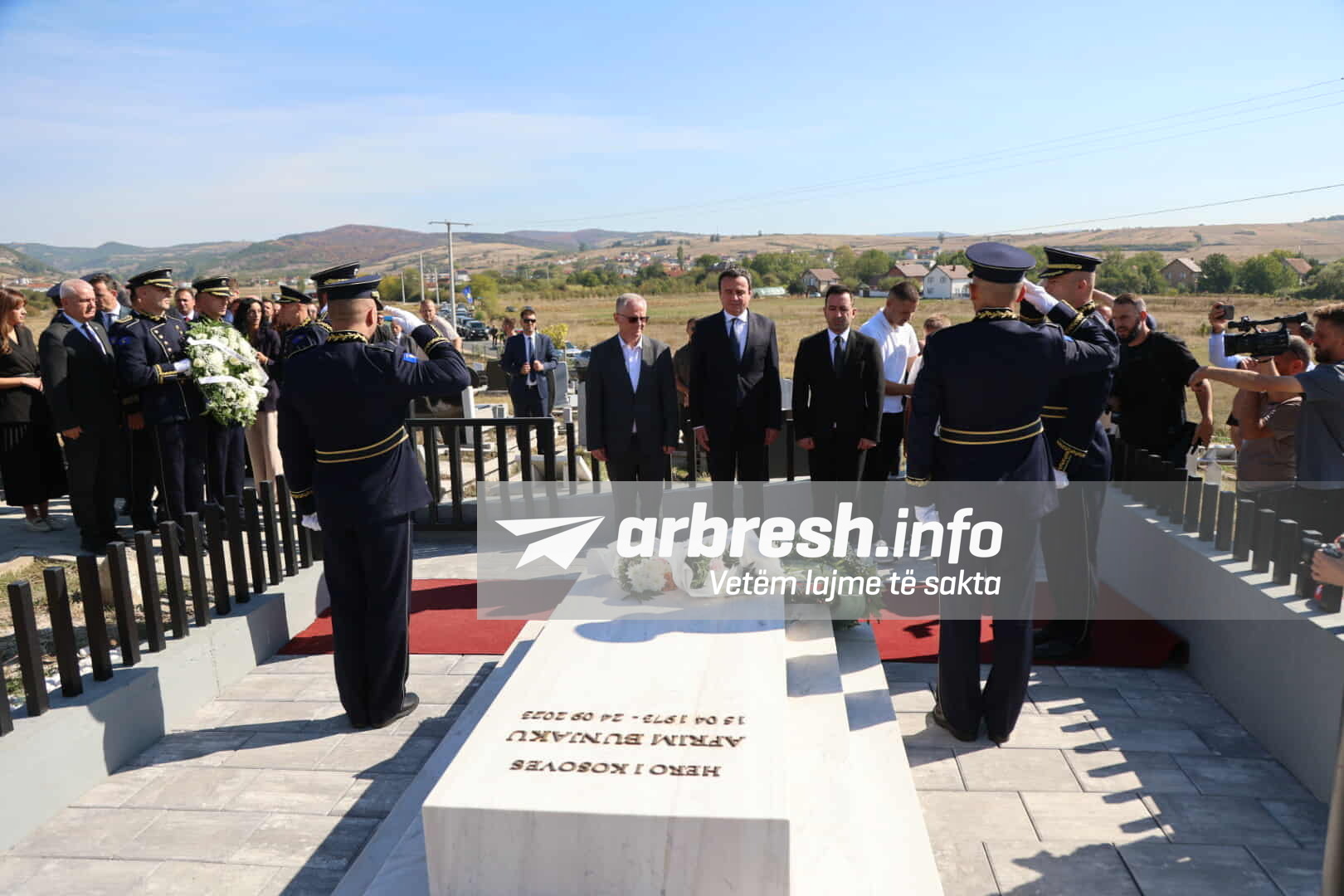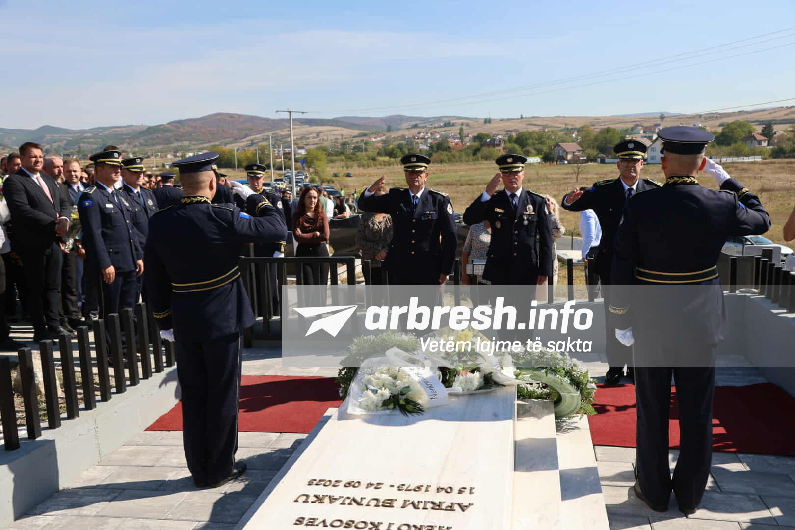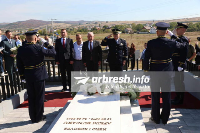 Pjesëmarrës në homazhe janë edhe familjarë, krerët e lartë e përfaqësues institucionalë, kolegë të Policisë së Kosovës dhe qytetarë nga e gjithë Kosova, të cilët kanë përkujtuar me nderim dhe mall sakrificën e Afrim Bunjakut./Arbresh.info