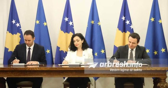 Krerët e shtetit, Vjosa Osmani, Albin Kurti dhe Glauk Konjufca kanë nënshkruar aplikimin e Kosovës për anëtarësimin e Kosovës në Bashkimin Evropian. Ceremonia është duke u mbajtur në këto momente dhe ata pritet të kenë edhe deklarime pas dhënies së nënshkrimit./arbresh.info/