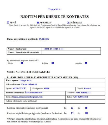 Sipas dosjes, procedura është e hapur dhe vlen rregulli i çmimit më të ultë, derisa afati për dorëzimin e ofertave është deri më 9 prill.