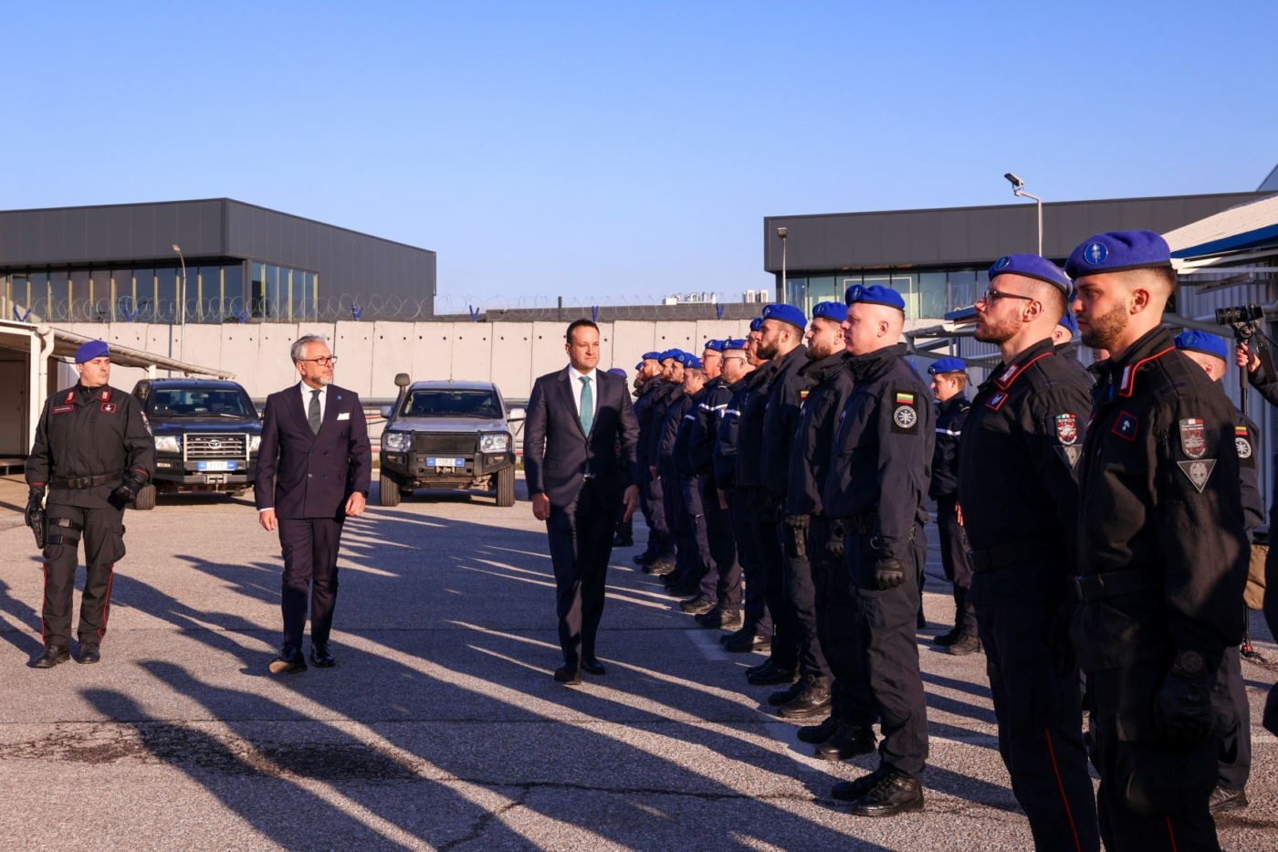 Në kompleksin e Misionit për mbështetje në Fushë Kosovë, Varadkar u mirëprit nga Shefi i Misionit EULEX, Giovanni Pietro Barbano, ku edhe inspektoi një gardë të nderit e përbërë prej pjesëtarëve të Njësisë Policore të Specializuar të EULEX-it dhe të Njësive Policore të Specializuara Rezervë, përcjell Arbresh.info