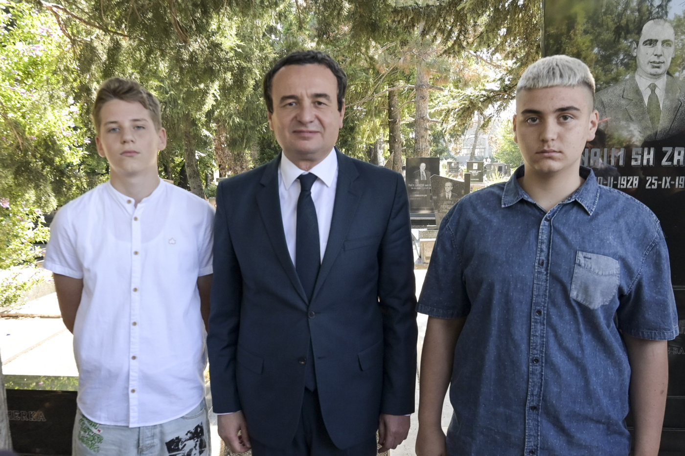 Kryeministri i Republikës së Kosovës, Albin Kurti, i shoqëruar nga ministra të kabinetit qeveritar dhe deputetë të Grupit Parlamentar të Lëvizjes Vetëvendosjes bëri sot homazhe dhe vendosi kurora me lule te varrezat e qytetit të Gjakovës, për nder të 25-vjetorit të rënies së dëshmorëve, Elton Zherka dhe Përmet Vula.