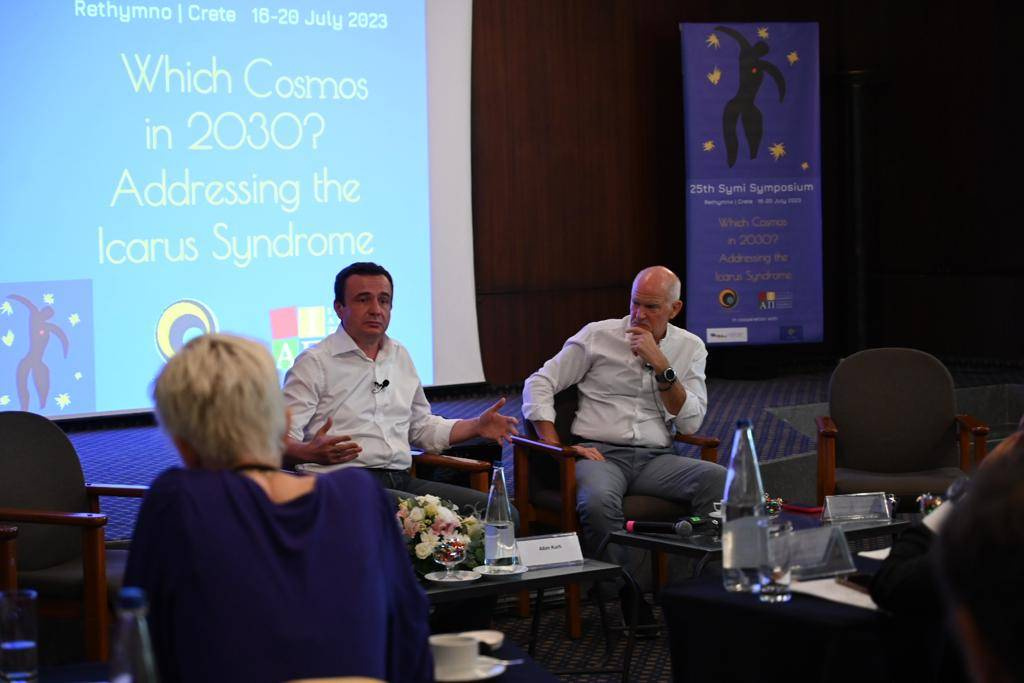 Kryeministri i Republikës së Kosovës, Albin Kurti në kuadër të edicionit të 25-të të Simpoziumit Ndërkombëtar SYMI, që po mbahet në Greqi, zhvilloi një bashkëbisedim me ish-kryeministrin grek, George Papandreou.