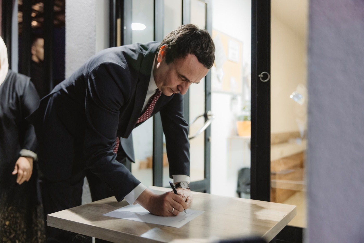 I shoqëruar nga Ministri i Administrimit dhe Pushtetit Lokal, Elbert Krasniqi, zëvendësministri i Arsimit, Shkencës, Teknologjisë dhe Inovacionit, Taulant Kelmendi dhe deputetja Fatmire Kollçaku, kryeministri tha se kishte kënaqësinë që sonte të ishin aty bashkë për të ndarë këtë moment së bashku dhe për të përcjellë porosinë e ndihmës për njëri – tjetrin, solidaritetit e tolerancës.