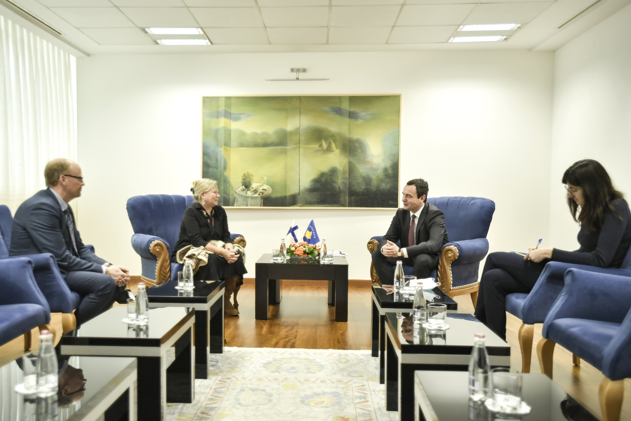 Ambasadorja Stjernvall shprehu vlerësimin e saj për bashkëpunimin me qeverinë dhe i dëshiroi kryeministrit rezultate të mira në qeverisjen e tij. Ajo përsëriti gatishmërinë e Finlandës për t’i ofruar ndihmë shtetit të Kosovës në ngritjen e kapaciteteve për arritjen e objektivave.