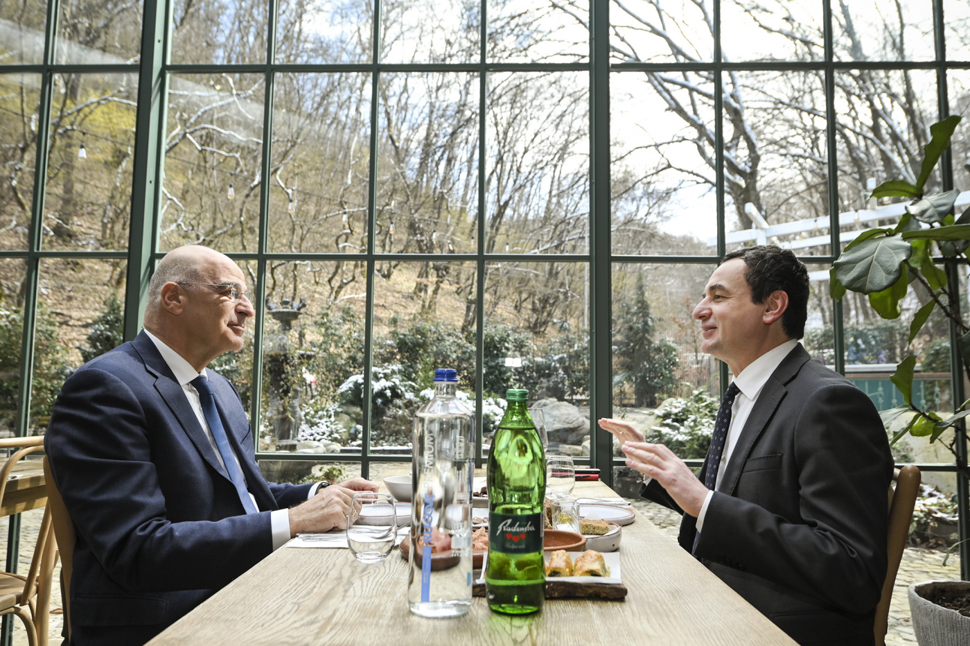 Kryeministri, Albin Kurti, pati sot një drekë pune me ministrin e Jashtëm të Greqisë, Nikos Dendias, i cili po zhvillon vizitën e gjashtë të tij në Kosovë.