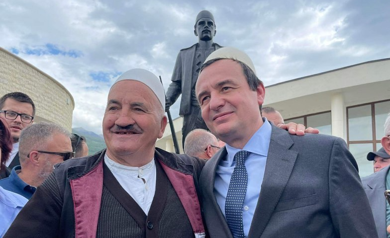 Gjatë zbulimit të shtatores, shefit të qeverisë iu vendosë një plis, që është simbol kombëtar te shqiptarët.