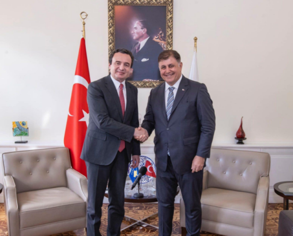 Kryeministri Kurti dhe Kryetari i Bashkisë Metropolitane të Izmirit, Dr. Tugay, biseduan edhe rreth mundësive për bashkëpunim në rrafshe të ndryshme, përfshirë këtu në atë të ekonomisë, kulturës, sportit dhe qeverisjes lokale./Arbresh.info/