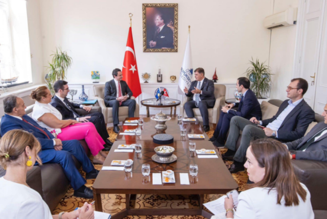 Në ditën e dytë të qëndrimit në Izmir të Turqisë, Kryeministri i Republikës së Kosovës, Albin Kurti, i shoqëruar edhe nga Ambasadori i Kosovës, Agon Vrenezi dhe Konsullja e Përgjithshme, Suzan Novobërdaliu, u mirëprit nga Kryetari i Bashkisë Metropolitane të Izmirit, Dr. Cemil Tugay dhe bashkëpunëtorët e tij.