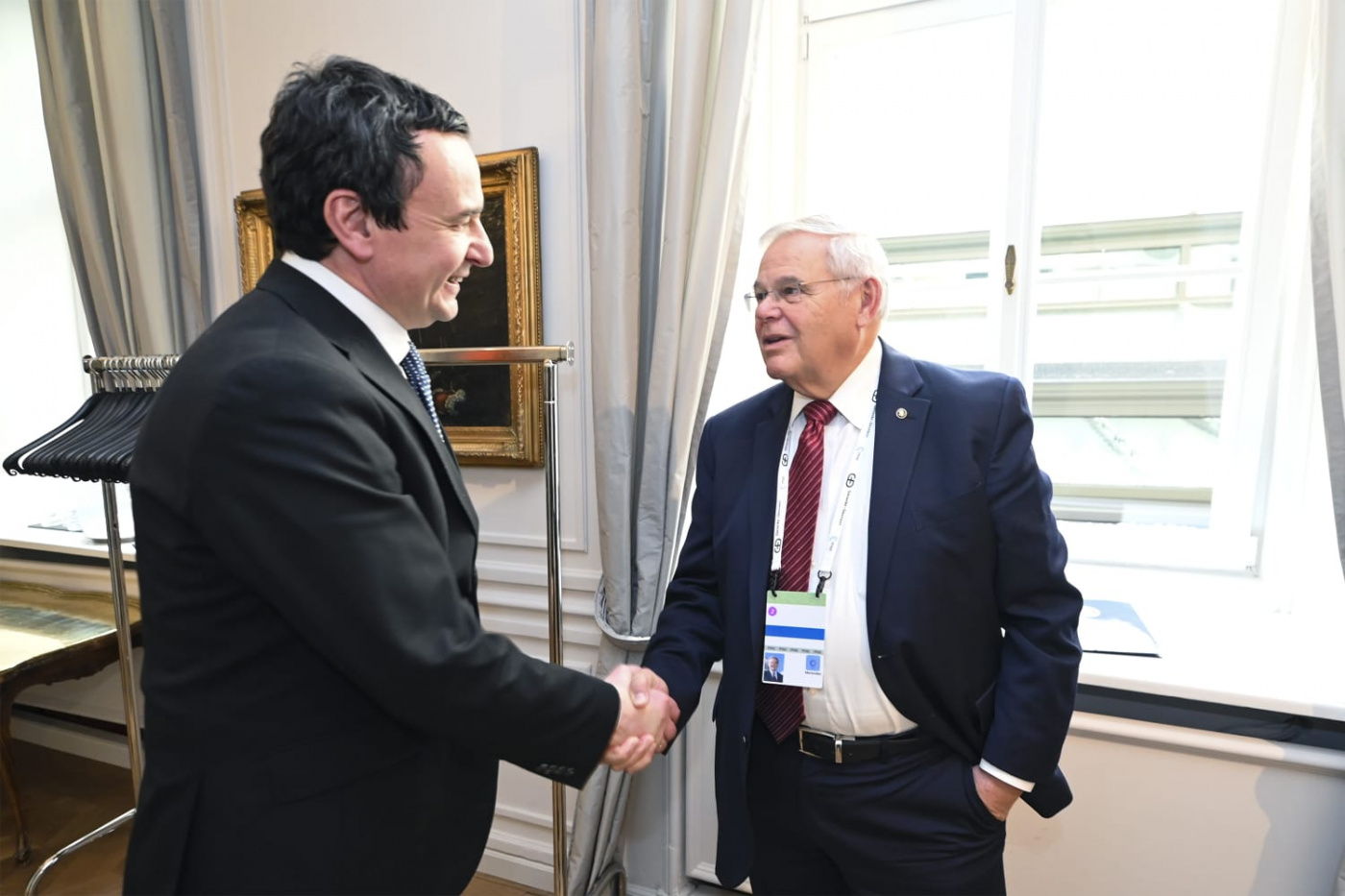 Kryeministri i Republikës së Kosovës, Albin Kurti dhe Senatori amerikan Bob Menendez, njëherësh Kryetar i Komisionit të Senatit të Shteteve të Bashkuara për Marrëdhëniet me Jashtë, diskutuan për marrëdhëniet bilaterale, partneritetin e ngushtë ndërmjet dy vendeve dhe fuqizimin e mëtejmë të tij.