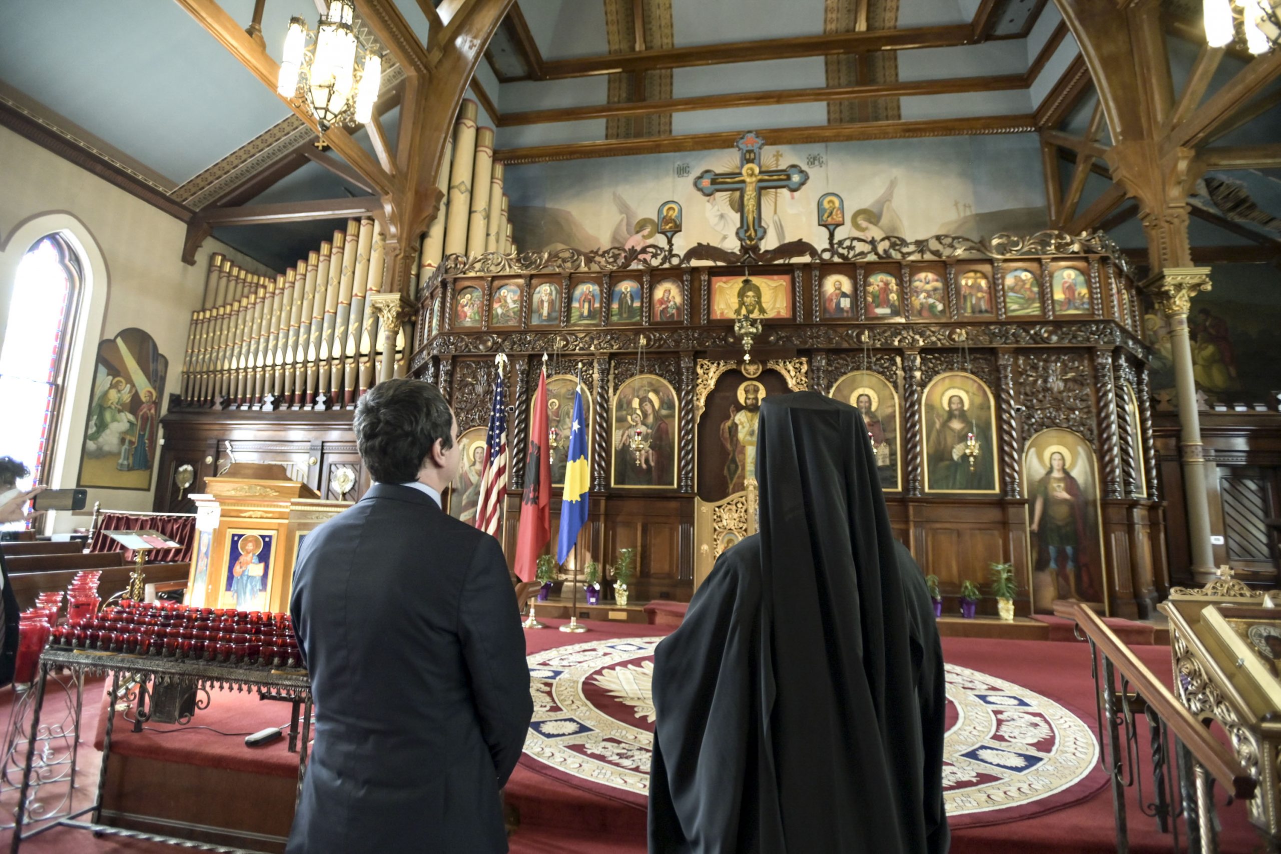 Në katedrale, kryeministri Kurti është takuar me komunitetin shqiptaro-amerikan dhe përfaqësues të shoqatës shqiptare “Vatra”, një ndër themeluesit e së cilës ishte Fan Noli, në nderim të figurës së të cilit ai ka mbajtur një fjalë rasti.