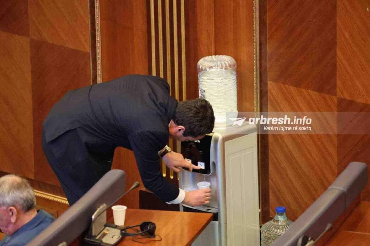 Kryeministri i Kosovës, Albin Kurti, gjatë debatit parlamentar lidhur me pabarazinë gjinore të grave në shoqëri u pa duke u vetëshërbyer me ujë në Kuvend.