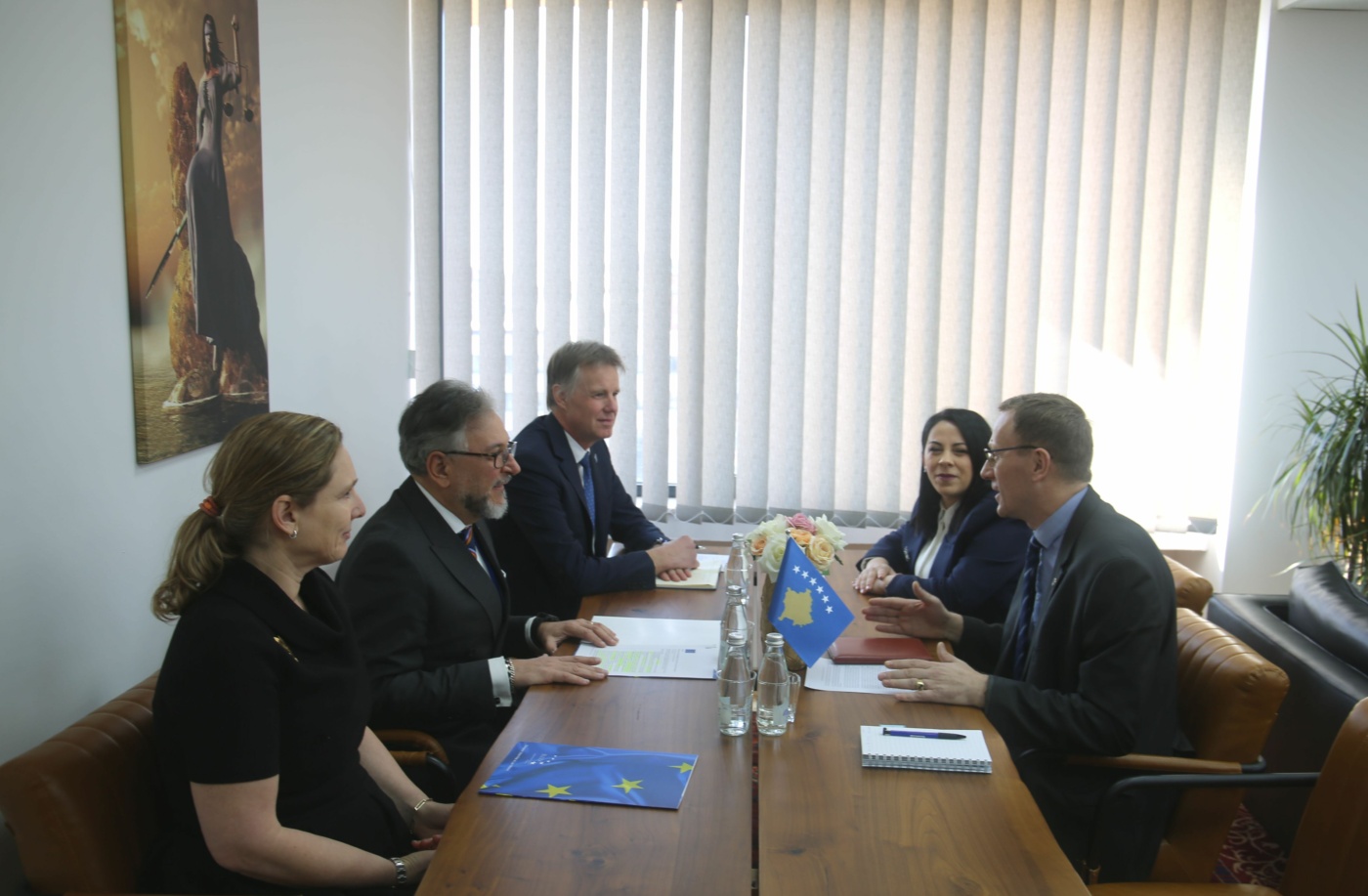 Shprehja e gatishmërisë së lartë për bashkëpunim në proceset e përbashkëta në mes të Këshillit Prokurorial të Kosovës (KPK) dhe Misionit të BE-së për Sundimin e Ligjit në Kosovë (EULEX) për çështjet që ndërlidhen me rëndësinë e monitorimit, këshillimit dhe mënyrën e trajtimit të sfidave dhe fuqizimit të sistemit prokurorial, ishin në fokus të diskutimeve në takimin e parë të kryesuesit të KPK-së, Ardian Hajdaraj, me shefin e EULEX-it, Giovanni Pietro Barbano dhe zëvendësshefen e këtij misioni, Emily Rakhorst.