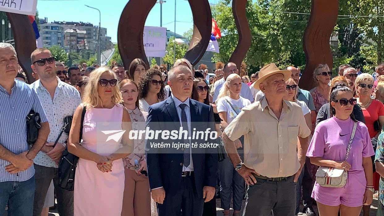 Në protestë shihet edhe kryetari i Listës Serbe, Zllatan Ellek dhe anëtarët e kësaj liste Igor Simiq dhe Slavko Simiq.