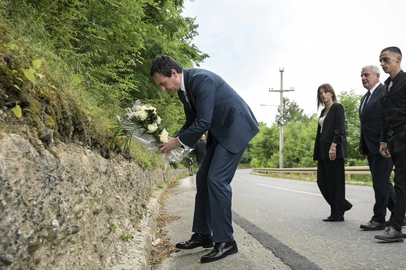 Fillimisht Kurti i shoqëruar nga ministri i Punëve të Brendshme Xhelal Sveçla, ka bërë homazhe dhe ka vendosur lule të freskëta në Lapidarin e zyrtarëve policorë të rënë në kryerje të detyrës, i cili gjendet në oborrin e përbashkët të ministrisë së Punëve të Brendshme dhe Drejtorisë së Policisë, përcjell Arbresh.info.