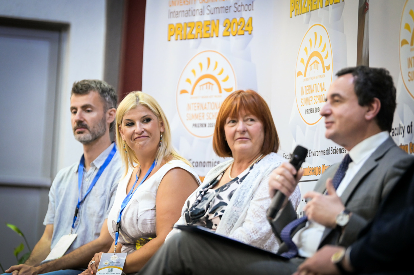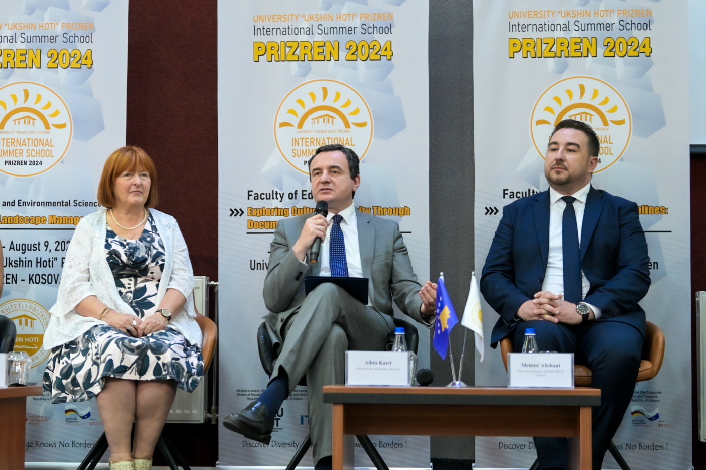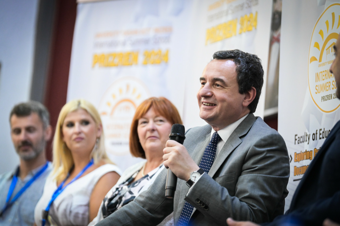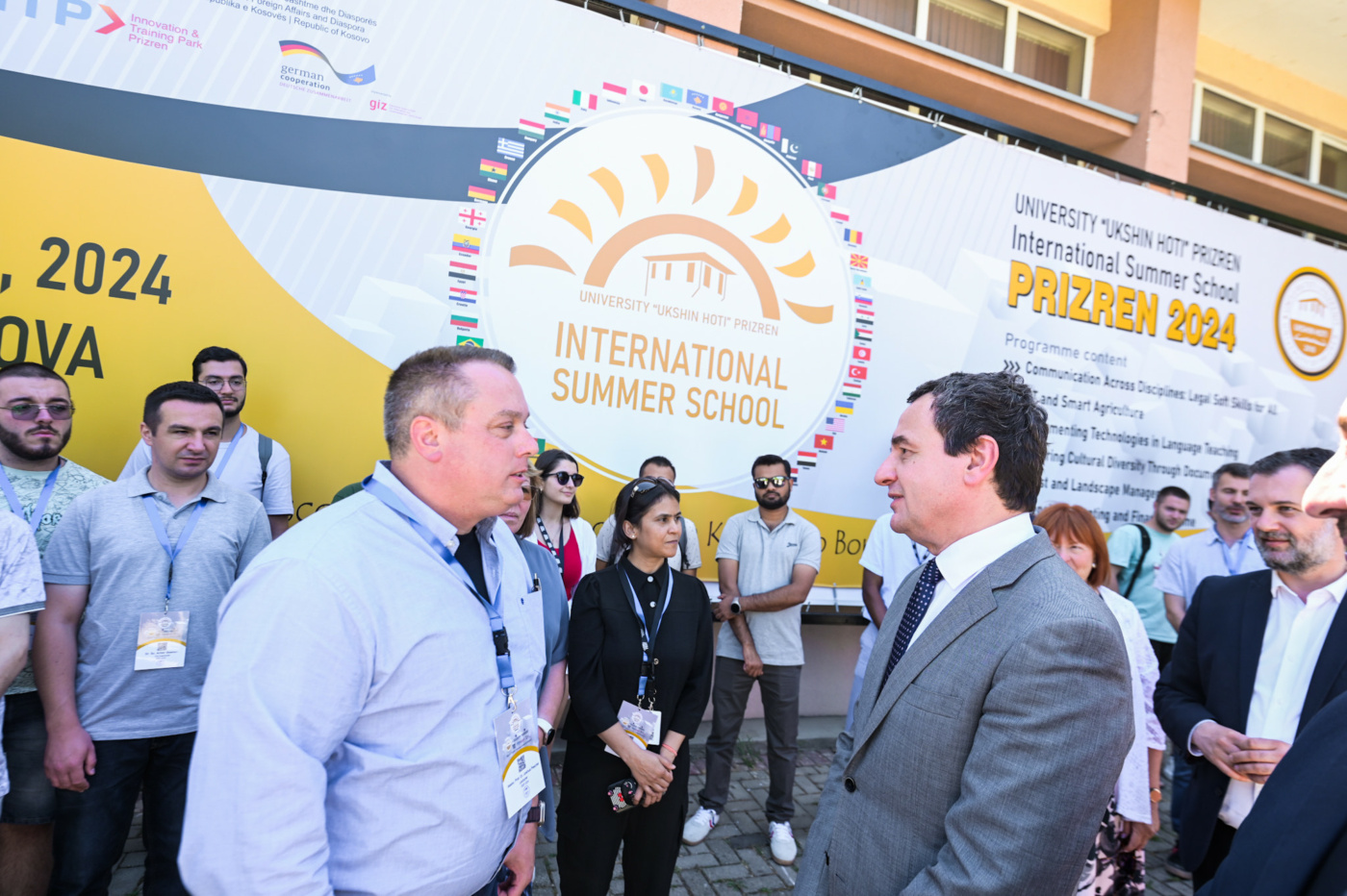 Kryeministri i Republikës së Kosovës, Albin Kurti, i shoqëruar nga ministri i Kulturës, Rinisë dhe Sportit, Hajrulla Çeku, sot zhvilloi një bashkëbisedim me studentët e Shkollës Verore Ndërkombëtare në Universitetin e Prizrenit.