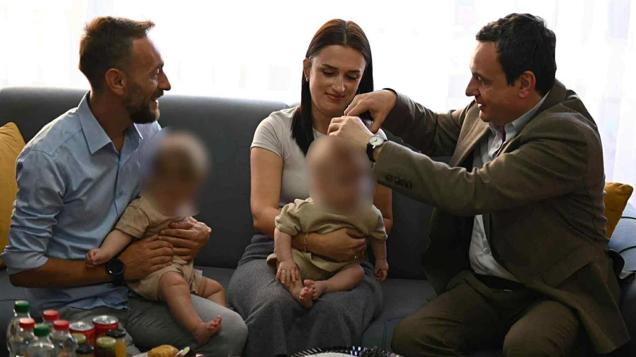 Kryeministri në detyrë i Kosovës, Albin Kurti, ka marrë rolin e kumbarës për fëmijët Hana dhe Dielli, në një ceremoni familjare të mbushur me emocion e gëzim, organizuar nga një aktivist i Lëvizjes Vetëvendosje në Gjilan.