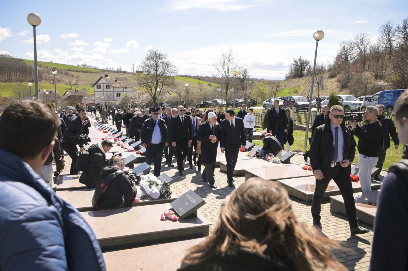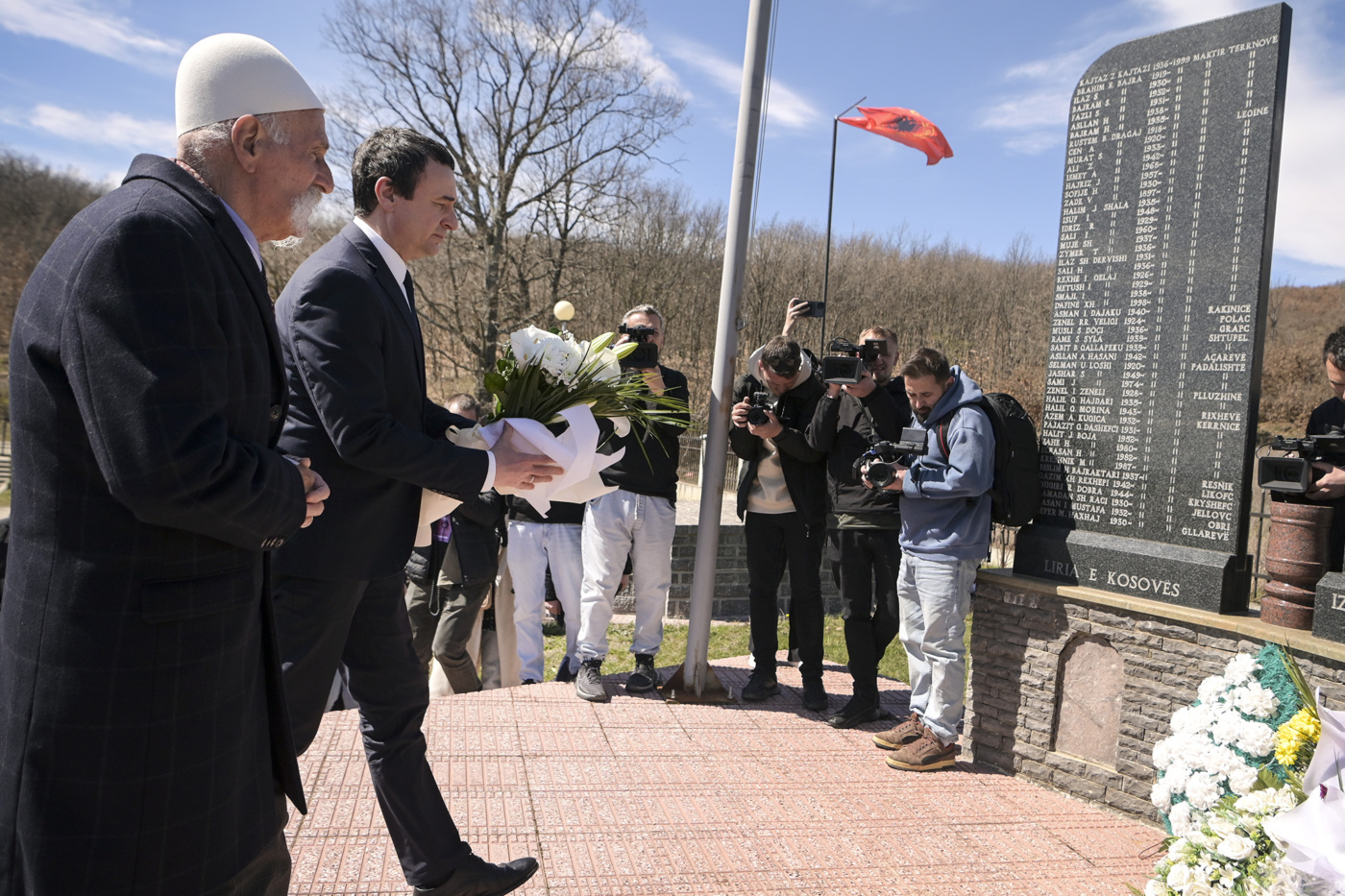 Zyra e Kryeministrit njofton se pranë Memorialit, Kryeministri Kurti tha se plagët e kësaj masakre nuk mund të mbyllen përderisa kriminelët nuk janë në burg. Gjaku i tyre ndodhet në themelet e lirisë dhe të shtetit tonë, tha ai, shkruan Arbresh.info