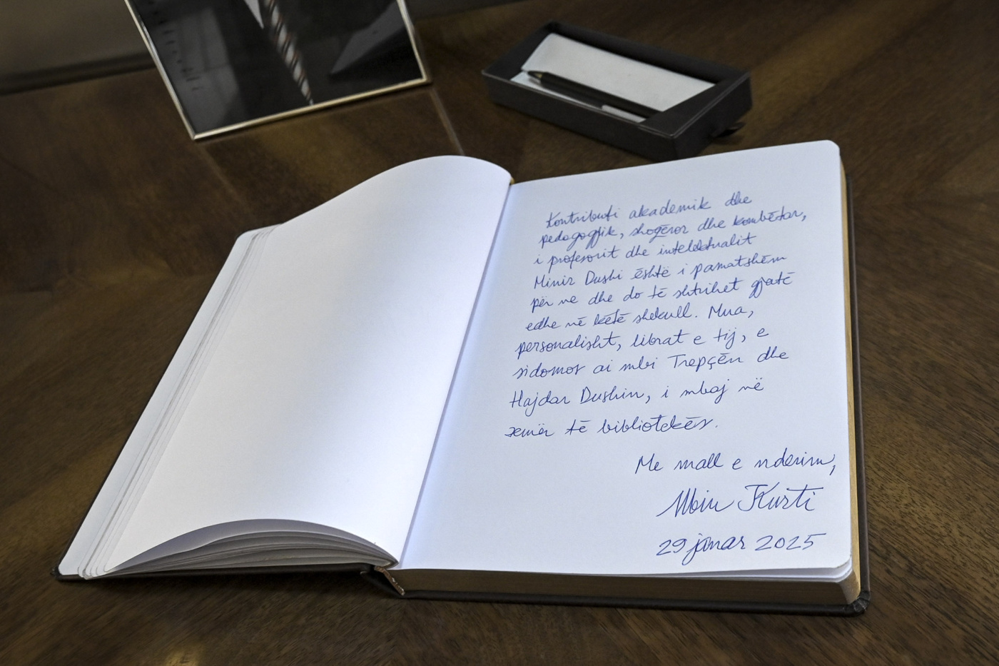 “Kontributi akademik dhe pedagogjik, shoqëror dhe kombëtar i profesorit dhe intelektualit Minir Dushi është i pamatshëm për ne dhe do të shtrihet gjatë edhe në këtë shekull. Mua, personalisht, librat e tij, e sidomos ai mbi Trepçën dhe Hajdar Dushin, i mbaj në zemër të bibliotekës”, ka shkruar kryeministri Kurti në librin e zisë për akademik Minir Dushin./Arbresh.info/