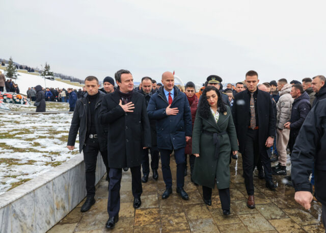 Pas homazheve, ku i pranishëm ishte edhe Ambasadori William Walker, ish-shef i Misionit Verifikues të OSBE-së, kryeministri Kurti vijoi drejt akademisë përkujtimore në shënimin e 26-vjetorit të Masakrës së Reçakut./Arbresh.info/