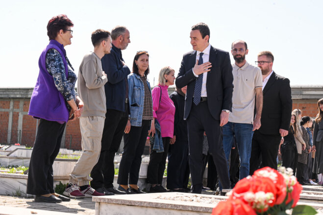 Kryeministri në detyrë, Albin Kurti, i shoqëruar nga anëtarë të kabinetit qeveritar bëri homazhe te varrezat e dëshmorëve në Fushë Kosovë, në nderim dhe kujtim të 16 martirëve të familjes Mirena.