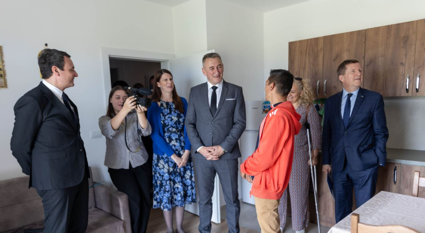 Kryeministri i vendit, Albin Kurti bashkë me ambasadorin e BE-së në Kosovë, Tomas Szunyog, ua kanë dorëzuar sot çelësat e shtëpive për 34 familje në Graçanicë.