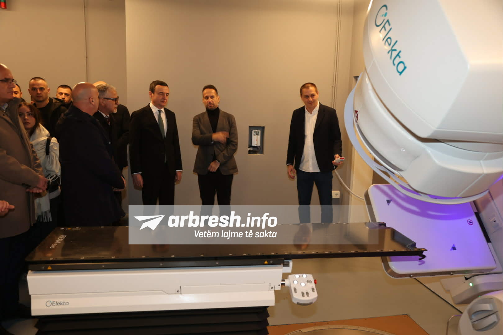 Kryeministrit në detyrë, Albin Kurti, i cili së bashku me Ministrin në detyrë të Shëndetësisë, Arben Vitia, kanë përuruar e Akseleratorin e ri linear dhe Bunkerin në Klinikën e Onkologjisë, në Qendrën Klinike Universitare të Kosovës (QKUK).
