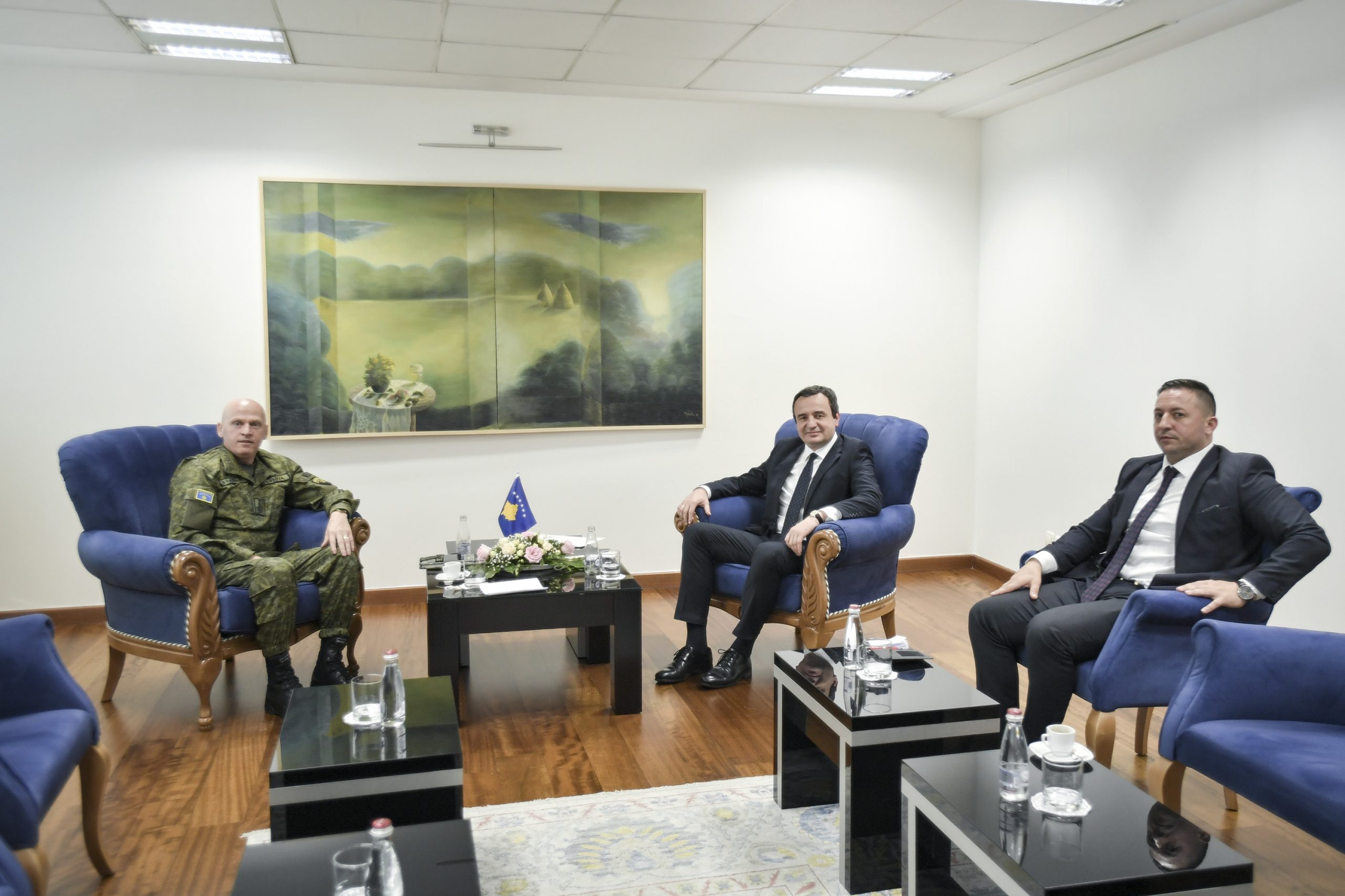Kryeministri i Kosovës, Albin Kurti, së bashku me ministrin e Mbrojtjes, Armend Mehaj, priti në takim Komandantin e Forcës së Sigurisë së Kosovës, gjeneralmajor Bashkim Jashari.