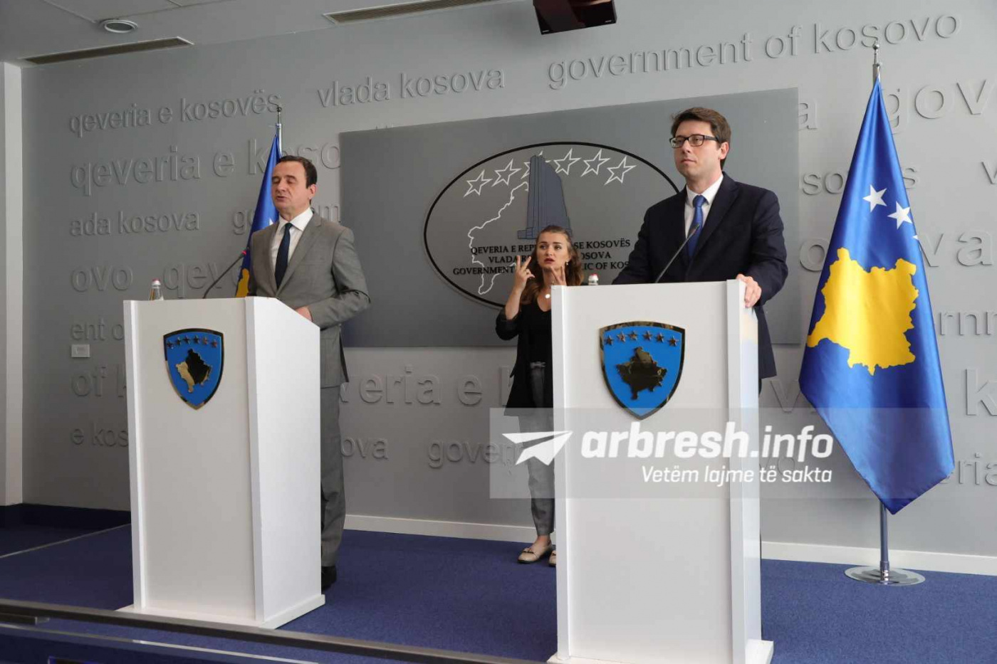 Kryeministri i Republikës së Kosovës, Albin Kurti dhe ministri i Financave, Punës dhe Transfereve, Hekuran Murati, mbajnë konferencë për media.