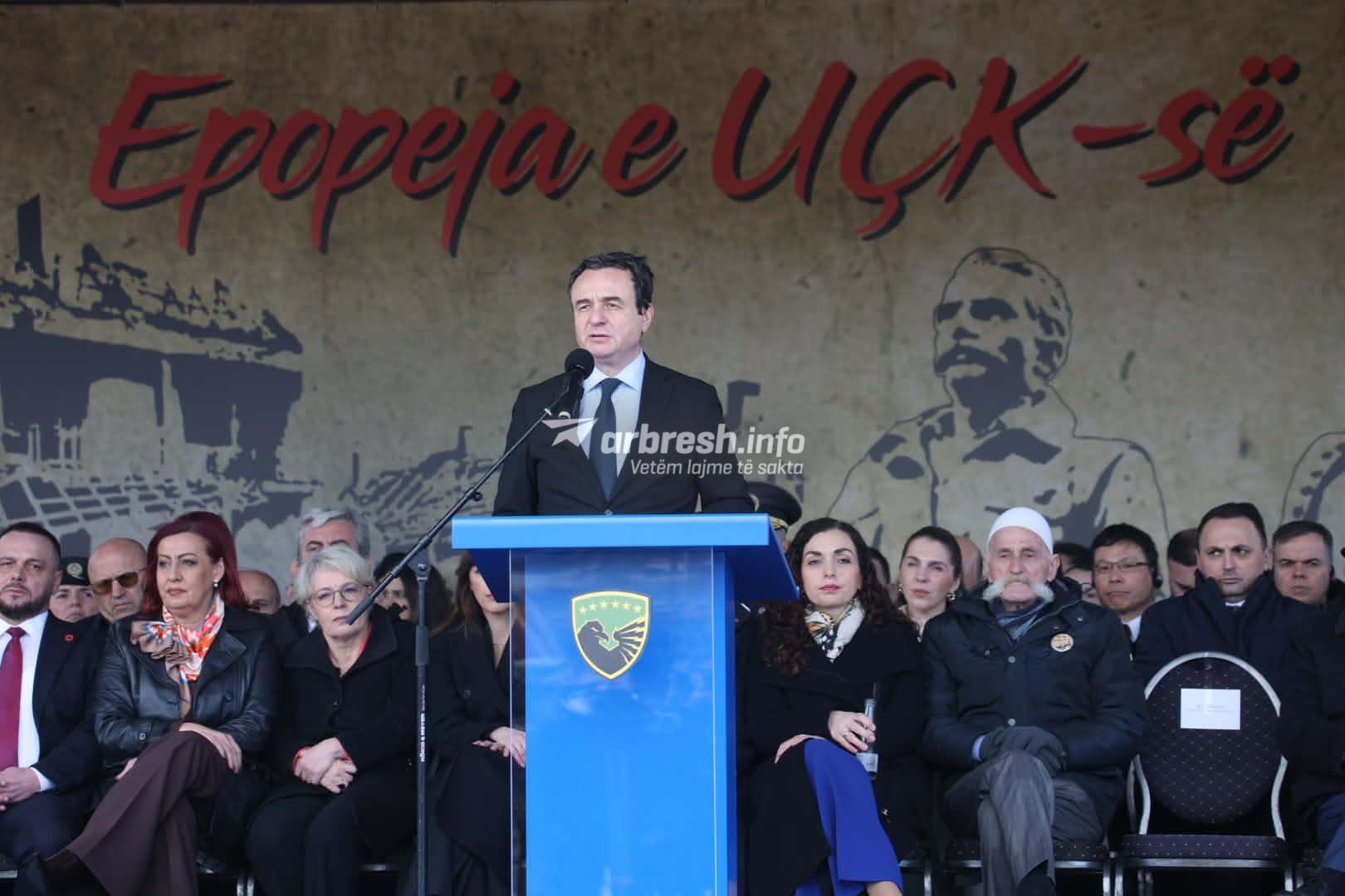 “Në historinë moderne të Kosovës Epopeja e UÇK-së paraqet traditën përmes së cilës i referohemi ngjarjes më përcaktuese në rrugën e betejave për liri”, tha Kurti.