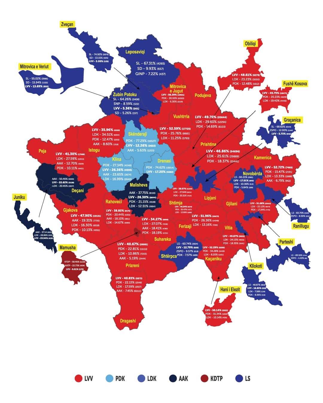 Në një deklaratë në rrjetin social Facebook, Kurti u shpreh: “Fitore e padiskutueshme, me vota cep më cep. Në 21 komuna prijmë si fitues, sipas rezultateve preliminare, pa votat me kusht dhe ato të mërgatës.”