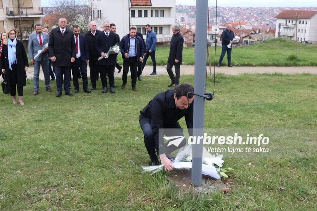 “ Te flamuri kombëtarë shqiptarë i cili qëndron para varrezave këtu në Prishtine, vendosëm lule të freskëta meqenëse veçanërisht në ditën e dëshmorëve ne i kujtojmë dhe i përkujtojmë këta njerëz të vendit tonë të kryeqytetit të cilët dhanë jetën e tyre për lirinë e popullit dhe çlirimin e vendit. Kujtimi dhe përkujtimi unë për ata është dëshmi që ne besojmë se për të tashmen tonë për të ardhmen tonë e kaluara e lavdishme është vendimtare për drejtimin dhe shpejtësinë në ecjen përpara të Kosovës shtet dhe të shqiptarëve si komb”, deklaroi Kurti.