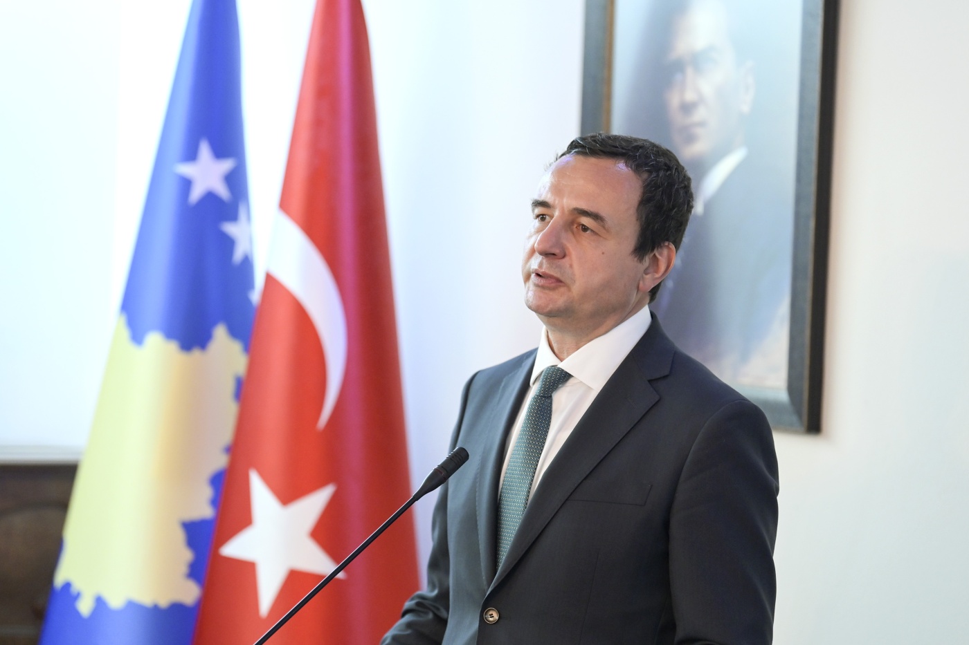 Kosova te Turqia shikon një shtet aleat dhe një popull mik, me të cilin kemi lidhje të ngushta historike, marrëdhënie të sinqerta dhe të dobishme në shumë plane në të tashmen, tha kryeministri Kurti në fjalën e tij. Ai shtoi se edhe për të ardhmen, populli i Kosovës dhe ai i Turqisë ndajnë perspektivën e paqes së qëndrueshme në rajonin e Ballkanit, të integrimeve në NATO dhe në Bashkimin Evropian, si edhe të zhvillimit ekonomik e social.